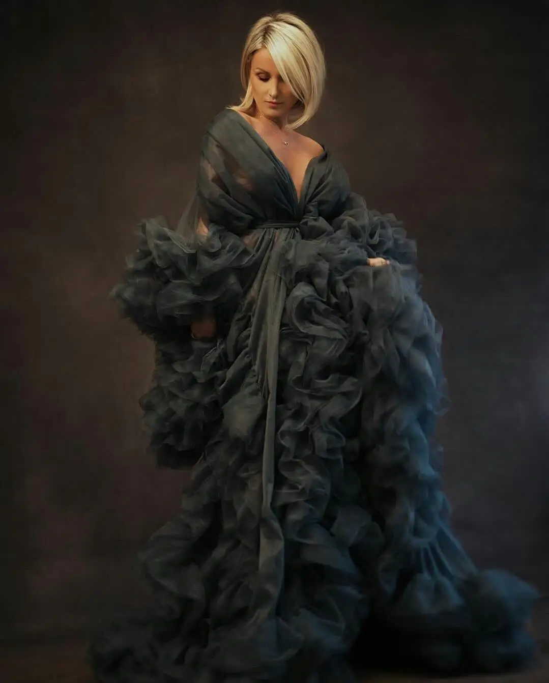 Роскошное платье для беременных с оборками для фотосъемки реквизит для фотосъемки платье для беременных Тюлевое платье костюм коктейльное платье халат