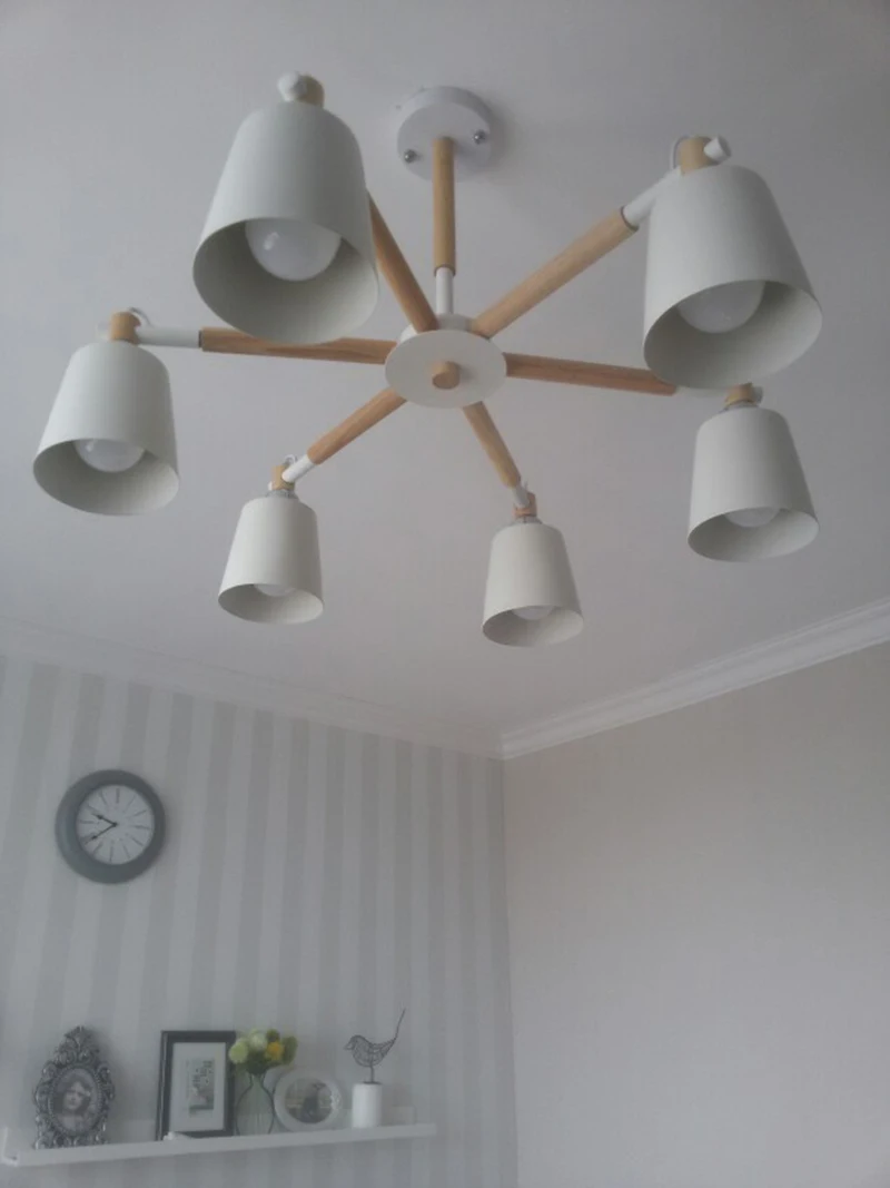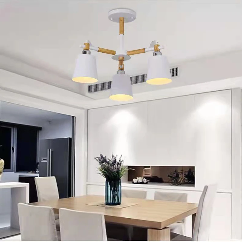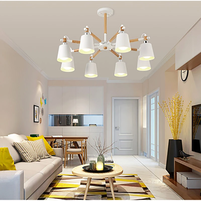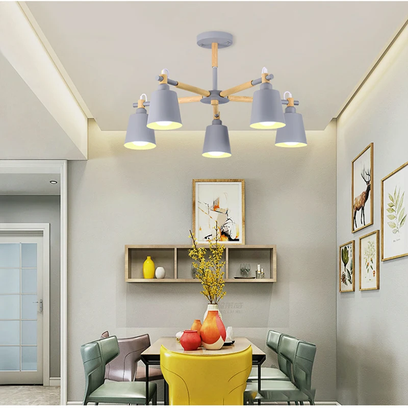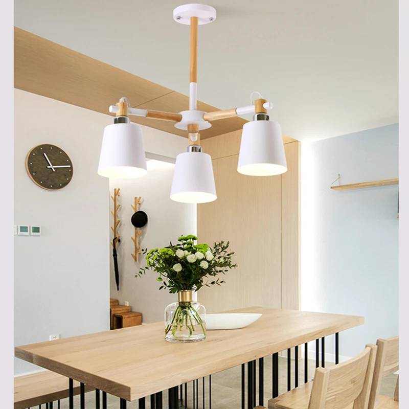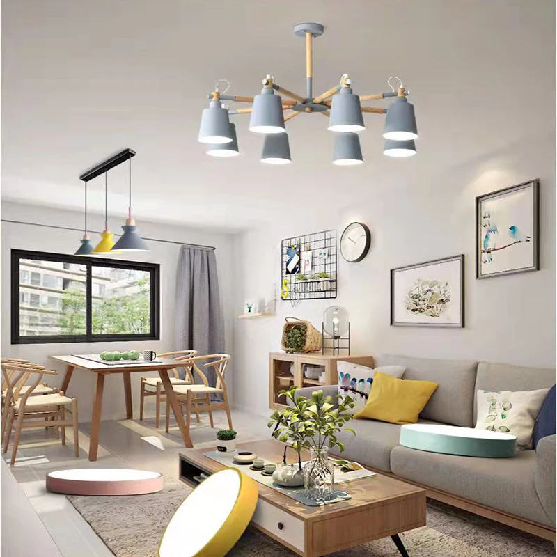 Современная и простая люстра E27 для гостиной с деревянным кронштейном, цветной светодиодный абажур, люстра для кухни, спальни, освещение для квартиры