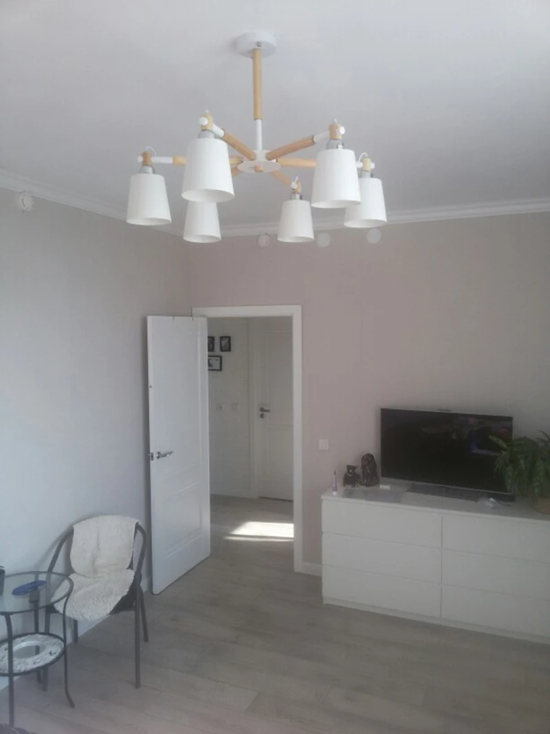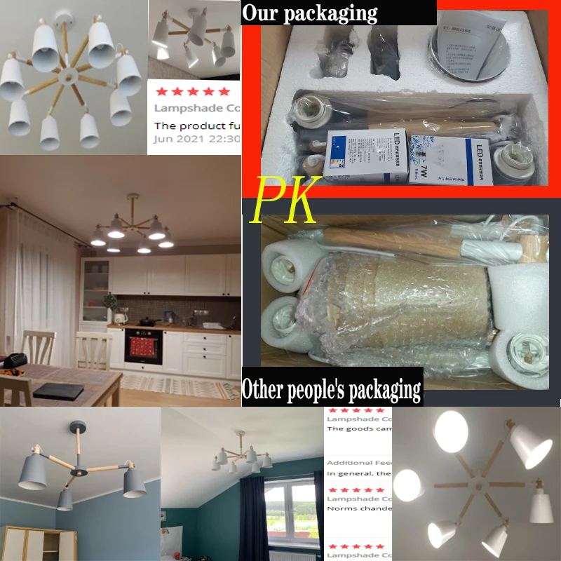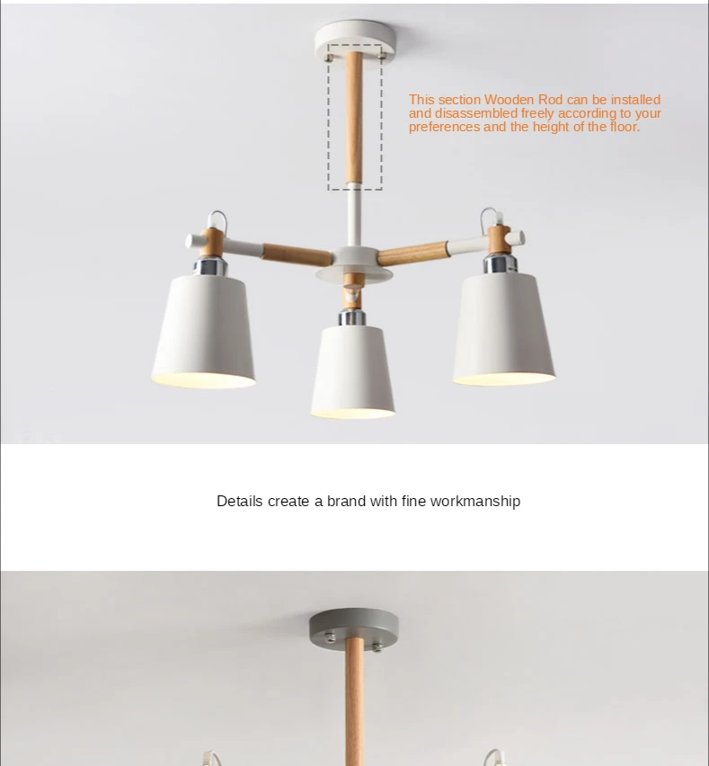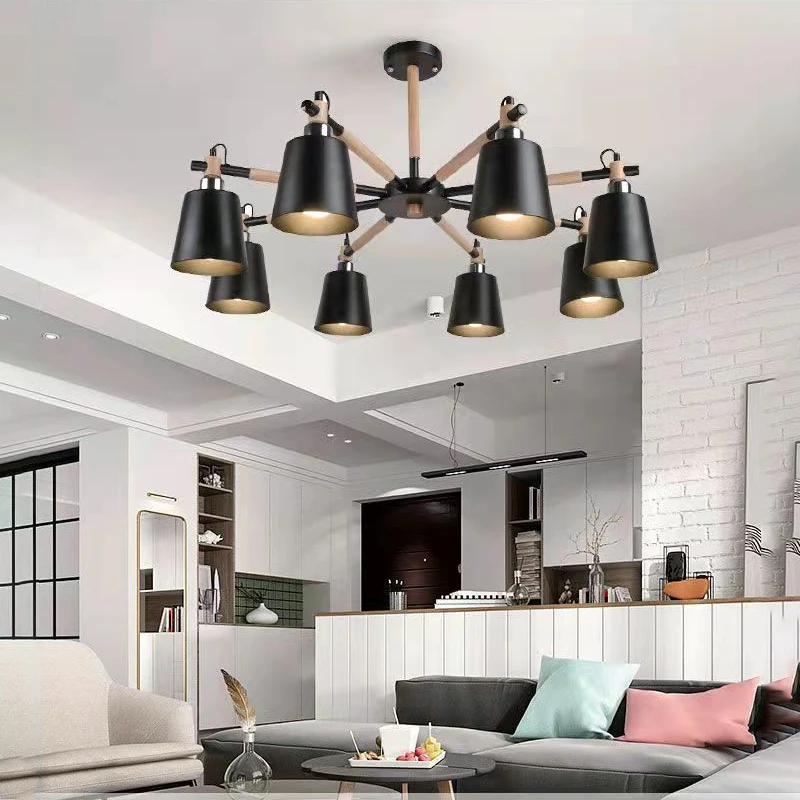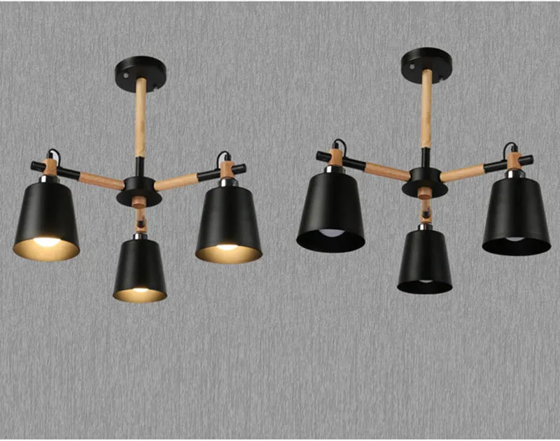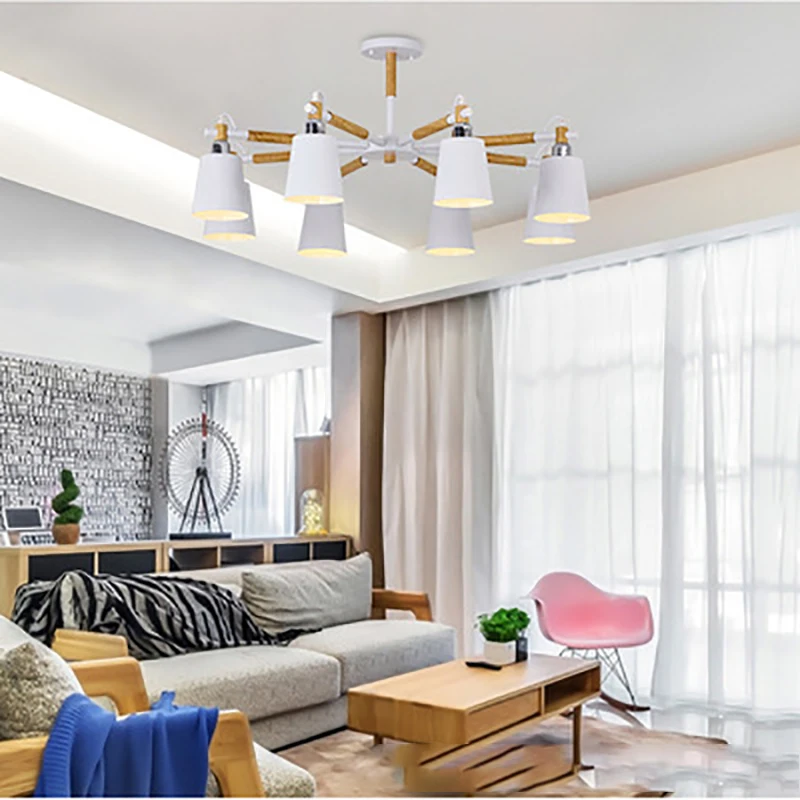 Современная и простая люстра E27 для гостиной с деревянным кронштейном, цветной светодиодный абажур, люстра для кухни, спальни, освещение для квартиры