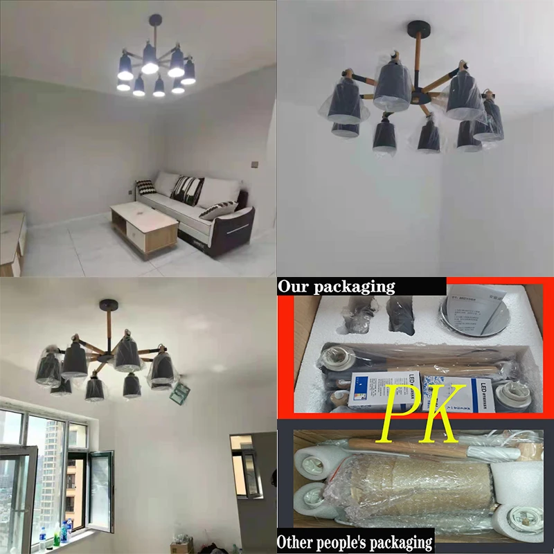 Люстра пришла вовремя, хорошо упакованная. Есть небольшие непрокрасы на плафонах, и кое-где деревянные детали неаккуратно обработаны, но на потолке этого не будет заметно. Также крепёжная гайка, благодаря которой люстра крепится к потолку, была с поврежденной резьбой: с такой резьбой очень трудоёмко найти гайку в наших магазинах, мы объездили все магазины крепежа в нашем районе СПб, ни в одном такой гайки не оказалось, но нам повезло, что у знакомого осталась такая гайка от старой люстры. С учётом того, что нам повезло найти нужную гайку, смело могу сказать: за такую стоимость отличная люстра!