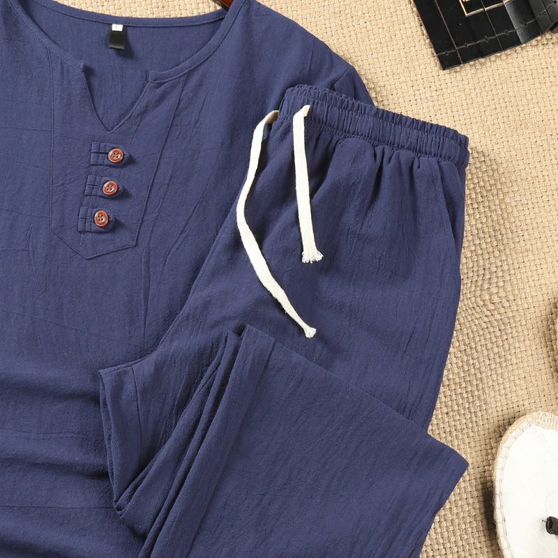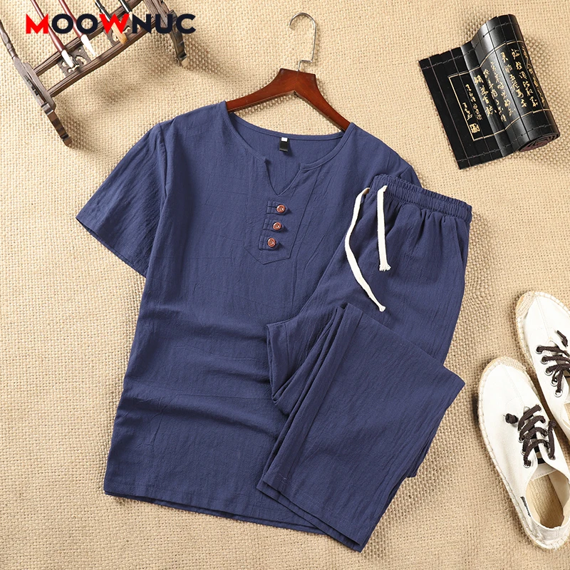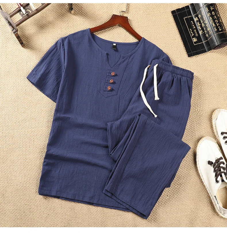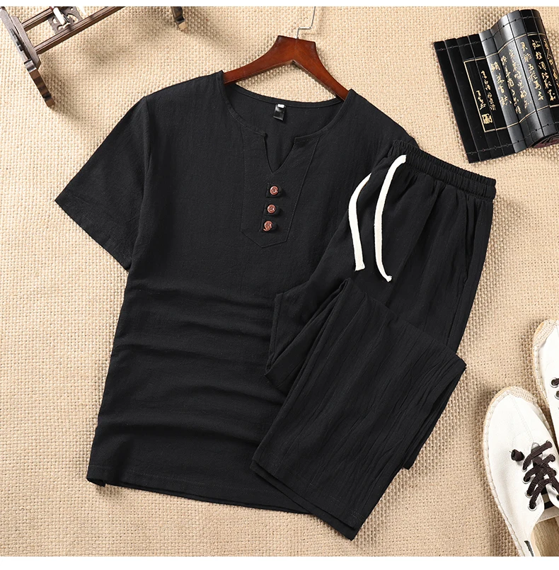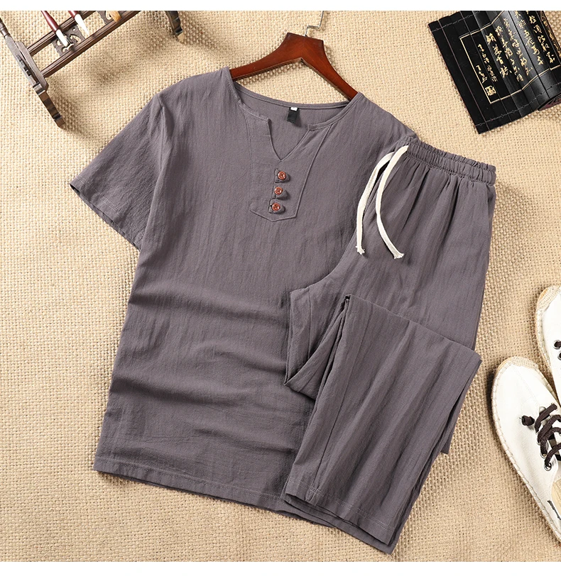 Тип товара: мужские комплекты Сезон: лето Стиль: Модный, Повседневный, Спортивный Длина рукава: короткий Материал: хлопок и конопля Узор: Сплошной Особенность: Толщина: обычная Мягкость: мягкая Эластичность: микроэластичность Вариант типа: Fit Дизайн: классический Размер: M,L,XL,XXL,3XL,4XL,5XL Упаковка включает: 1 * мужские футболки и брюки