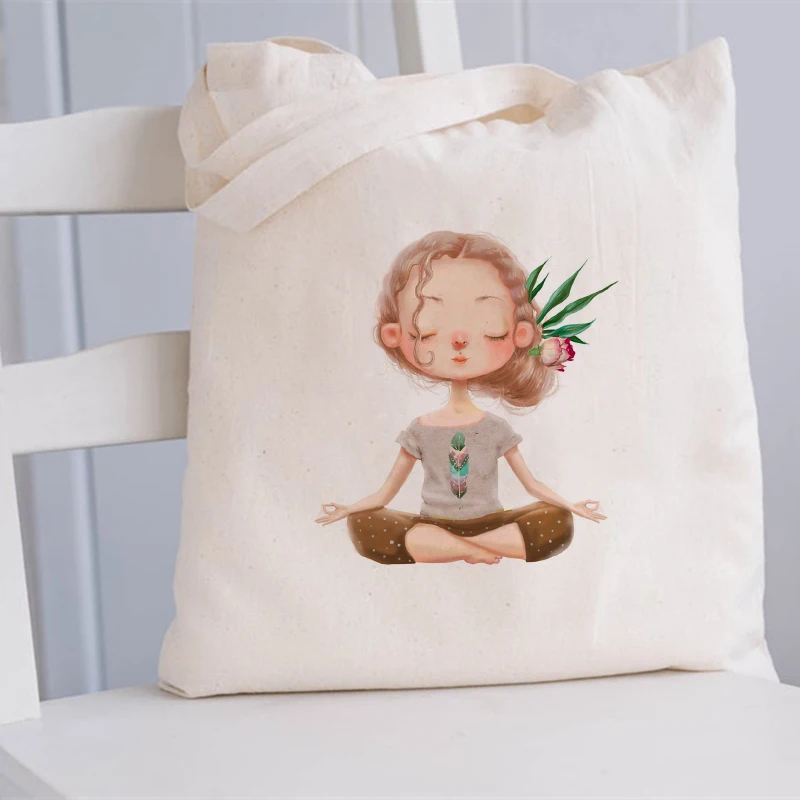 Женская Холщовая Сумка для покупок, эко-сумка с принтом девушки из мультфильма, многоразовая Женская модная сумка-шоппер