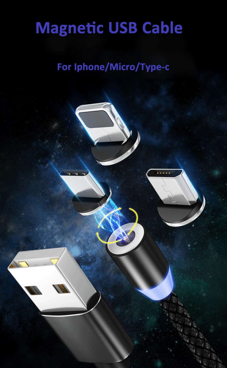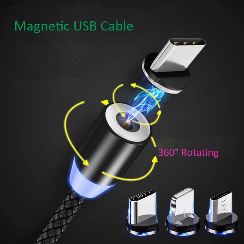 Магнитный кабель для Type C Micro USB Iphone зарядный кабель со светодиодом
