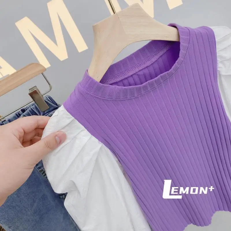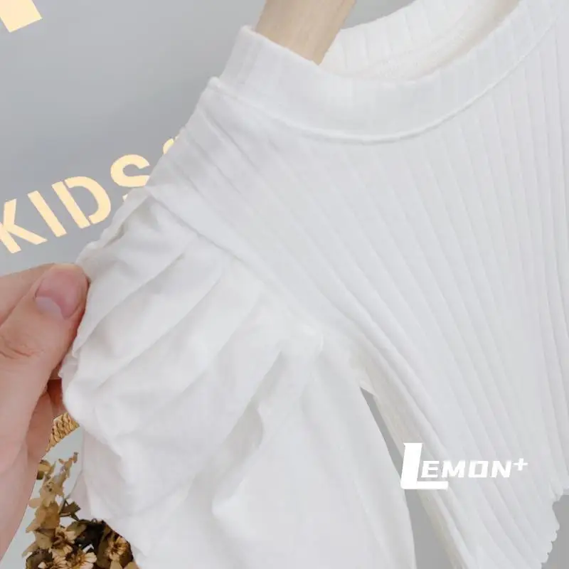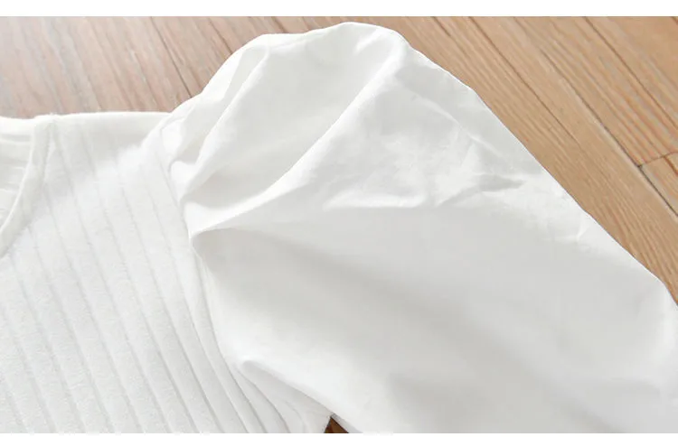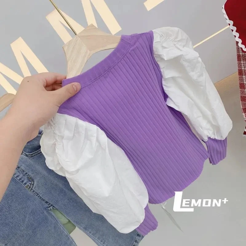 Футболка для девочек с пышными рукавами, весна 2021, новая детская модная футболка с длинным рукавом, детская трикотажная одежда, детская нижняя рубашка