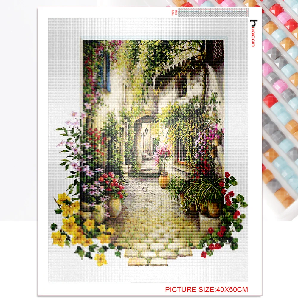 Алмазная картина Huacan, квадратная мозаика с изображением дома, цветов, вышивка крестиком, пейзаж, улица, домашний декор