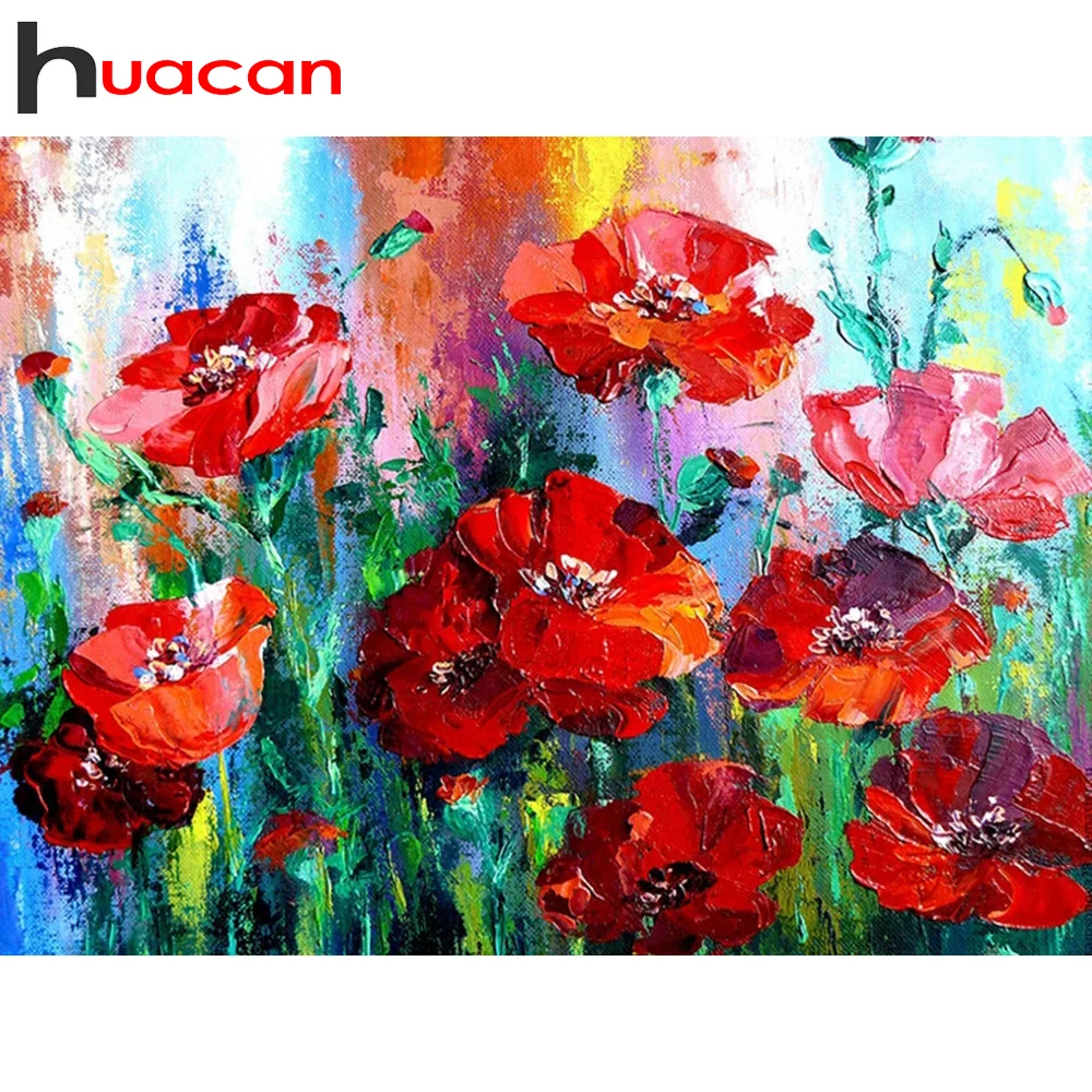 Алмазная 5D картина Huacan, полноразмерная вышивка, квадратный Мак, мозаика, вышивка крестиком, цветок, украшение для дома