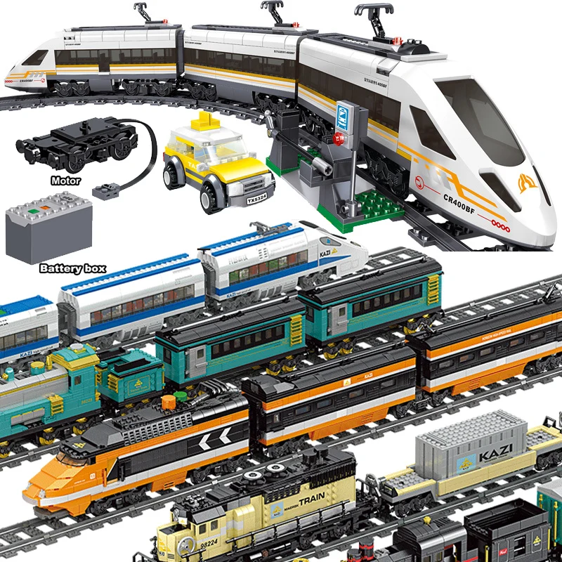 Городской Электрический поезд с электроприводом, серия строительных блоков, аккумулятор, железная дорога, машина для укладки, кирпичи, игрушки для детей, подарки