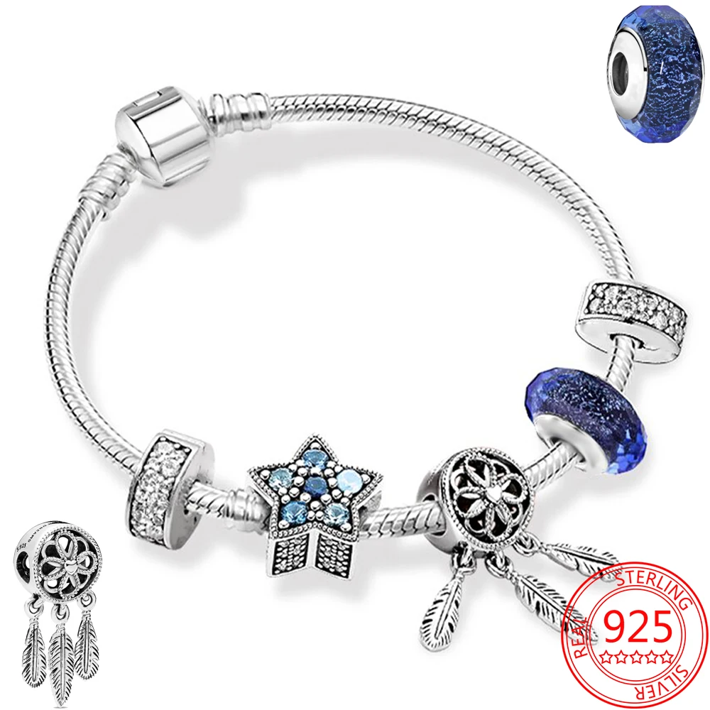 Изысканные стерлингового серебра 925 звезда морская Ловец снов браслет сердце моря Мурано комплект моды летнего сезона, брендовая браслет подарки