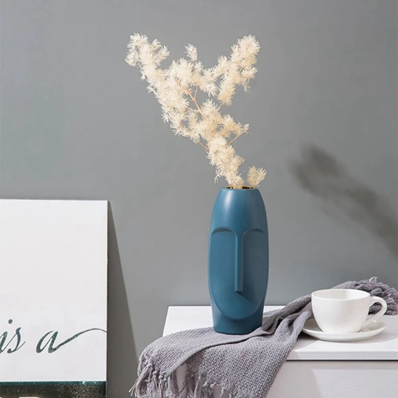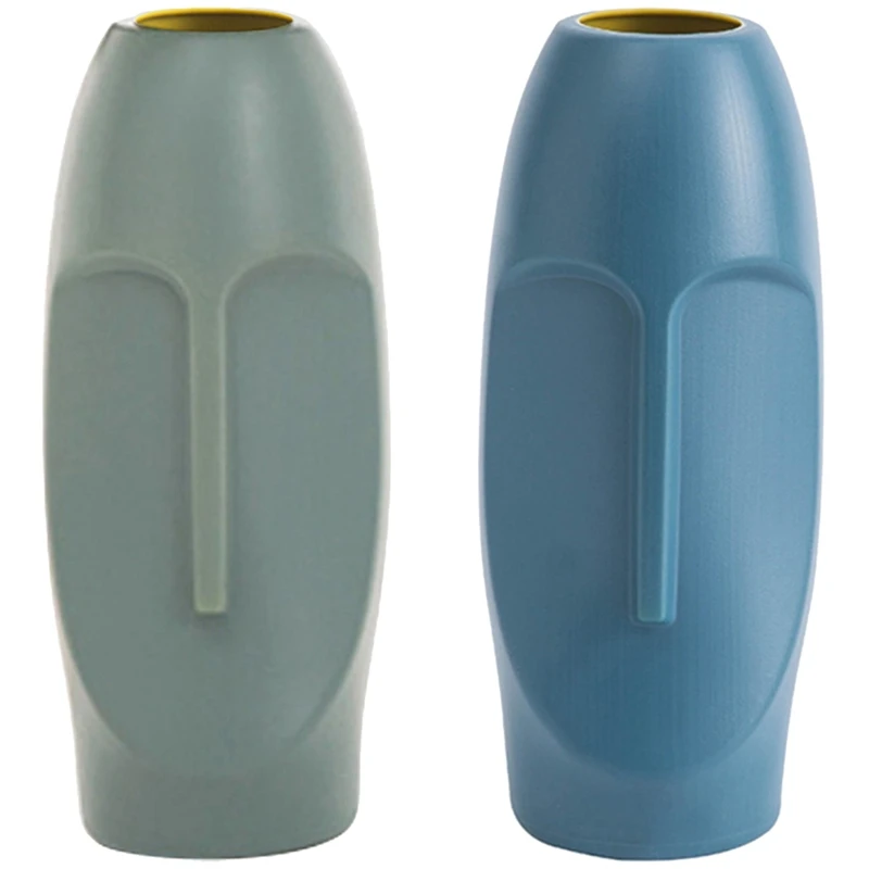2x Скандинавская Минималистичная полиэтиленовая абстрактная ваза с человеческим лицом, креативная витрина, декоративная ваза в форме головы Figue-зеленый и синий