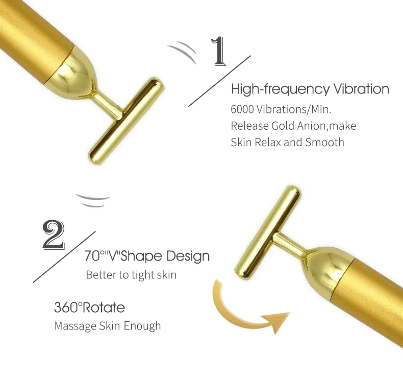 Массажное устройство для лица ролик массажное устройство Дерма уход за кожей лечение морщин 1: вибрационная Массажная терапия является очень популярной косметической техникой и вызывает ощущение в инструментах по уходу за кожей 2: t-образная головка увеличивает небольшую вибрацию для продвижения и похлопывания кожи лица и точек лечения, расслабляет мышцы лица 3: активируйте кожу вибрацией (массажем) для поддержания влажности и эластичности, а также для улучшения кровообращения 4: лифтинг для лица, подтяжка кожи, восстановление кожи 5: удаляет мешочки и уменьшает морщины вокруг глаз, губ, лба и шеи 6: его можно использовать на лице, лбу, щеке, шее, ключице, плече, руке, руке и ноге. A: Активируйте клетки, чтобы восстановить внешний вид уставшей кожи B: кожа чувствует себя более активной и выглядит более сияющей. C: для лифтинга, супер увлажнения, антиоксидантов и морщин стойкие продукты для достижения лучших результатов D: реконструируйте контуры лица, чтобы показать молодость Питание от аккумулятора AA