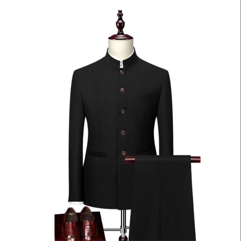 Мужской костюм в китайском стиле, Свадебный облегающий пиджак станд...