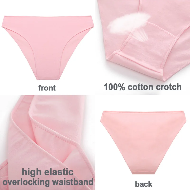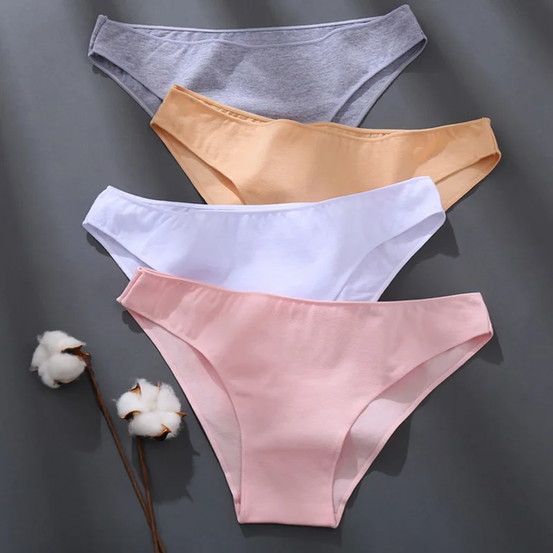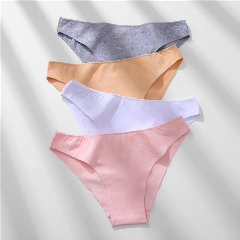 Трусики женские хлопковые, 3 шт.компл., однотонные, бикини, M-XXL