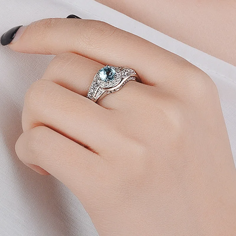 Mialngirl, простое классическое кольцо с прозрачным голубым круглым кубическим цирконием, стильное кольцо для женщин, свадебные украшения