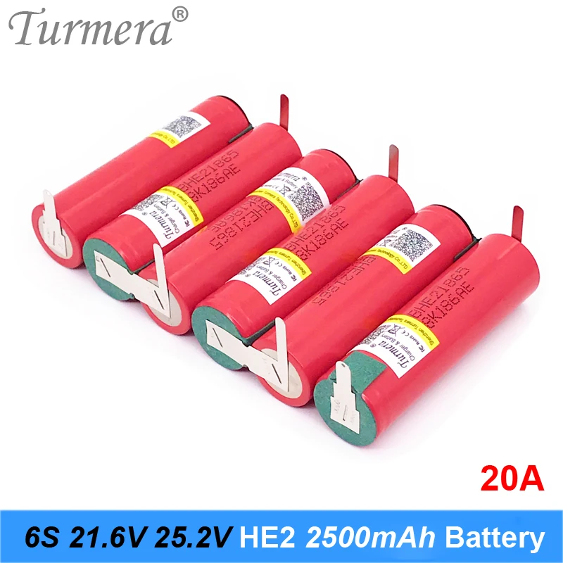 Аккумулятор Turmera 3S 4S, батарея для пайки 6S, 18650 HE2, 2500 мАч, 5000 мАч, 20 А, 35 А, от 12 В до 25,2 в, для шуруповерта, аккумулятор Shurika
