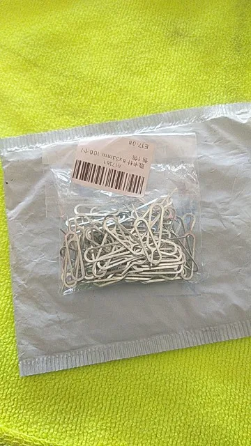 Скрепки обычные, есть на некоторых небольшие заусенцы. Теперь можно не беспокоиться при потере скрепки)