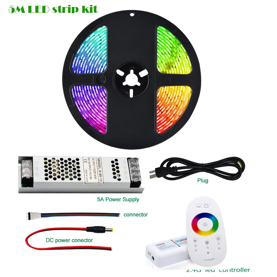 Светодиодная лента 5050 RGB RGBW RGBWW Светодиодная гибкая лента + Радиочастотный пульт дистанционного управления 2,4G + 12 В постоянного тока 220 В Комплект адаптера питания