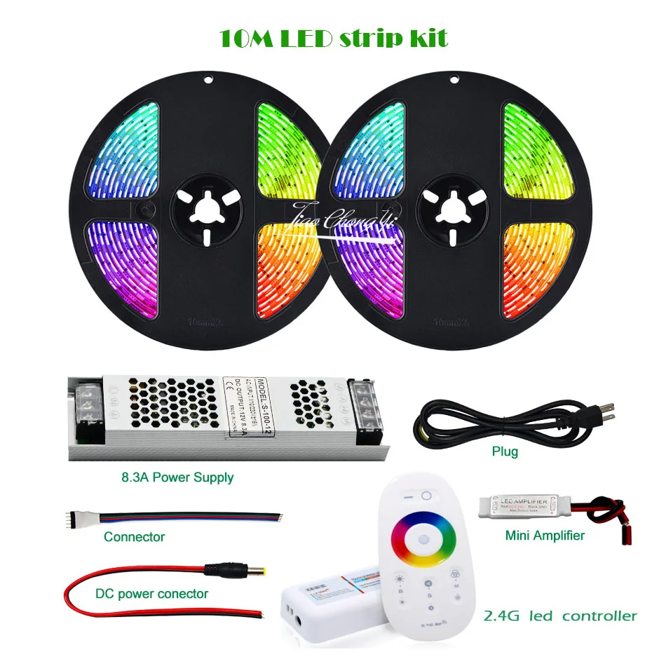 10 м Светодиодная лента IP65/IP20 комплект:2 рулона 5 м IP65/ IP20 5050 RGB/RGBW/RGBWW светодиодный светильник1 комплект 2,4G RGB/RGBW светодиодный пульт дистанционного управления1 шт. DC12V 8.3A источник питания1 шт. штепсельный кабель европейского стандарта1 шт. мини-усилитель1 шт. светодиодный разъем постоянного тока1 шт. 4pin/5pin светодиодный разъем