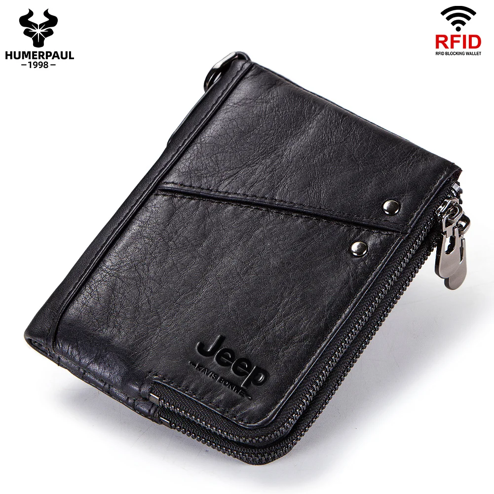 Кошелек мужской короткий из натуральной кожи, винтажный бумажник на молнии, сумочка для денег
