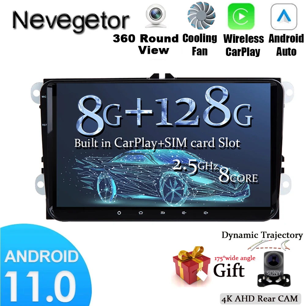 Автомагнитола 2 Din, 8 ГБ, Android 11, GPS-навигация для VW Passat B6 T5 amarok volkswagen Skoda Octavia 2seat leon 2 golf 5, мультимедиа