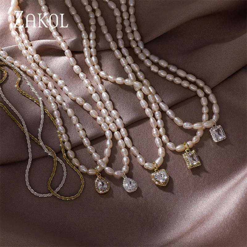 ZAKOL новый дизайн корейские Ретро Геометрические Ожерелья с натуральным жемчугом темпераментные металлические цепочки чокер для крутых девушек вечерние ювелирные изделия
