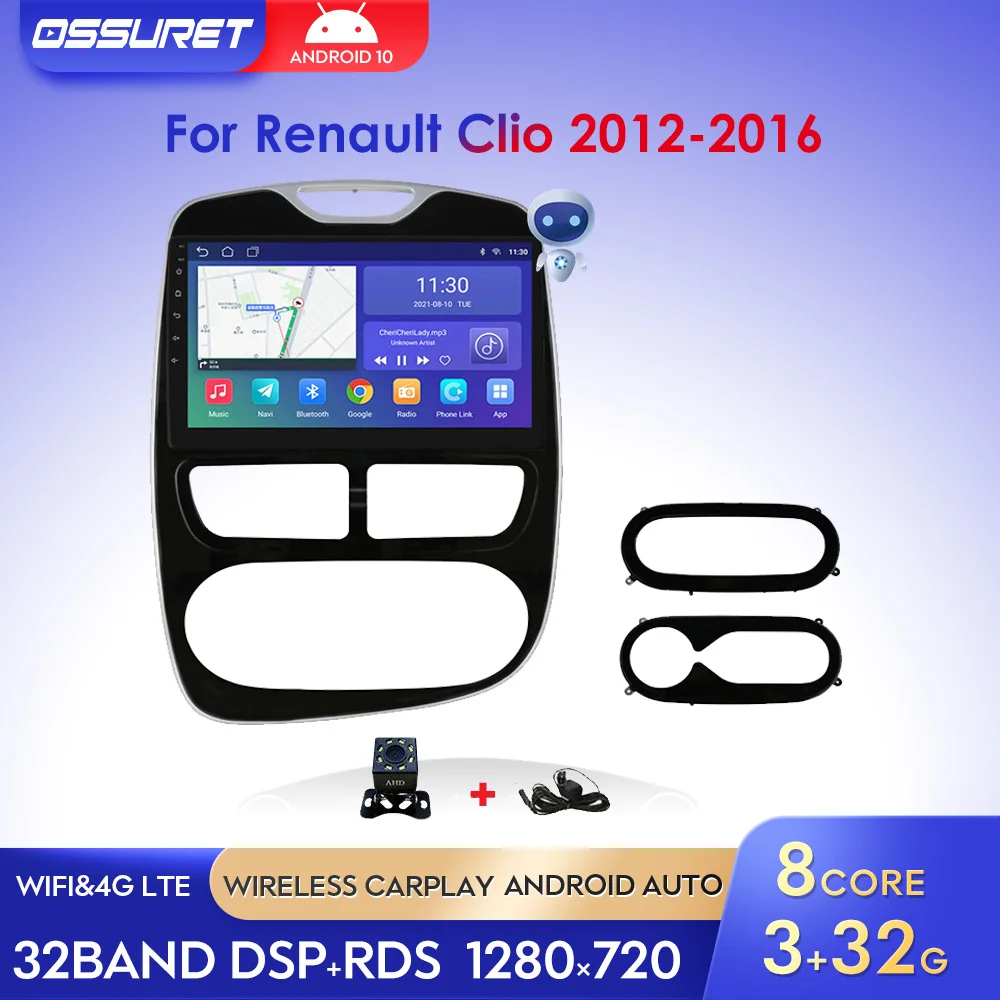 Автомагнитола 10,1 дюйма для Renault Clio 2012-2016 Android 10 4 ядра 2 Гб ОЗУ 32 Гб ПЗУ GPS BT навигация Авторадио FM 4G LTE Wifi