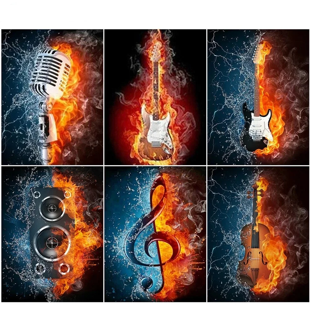 Картина 5D с изображением гитары, микрофона, квадратная, ручной работы, стразы, вышивка, мозаика, настенная картина для украшения дома