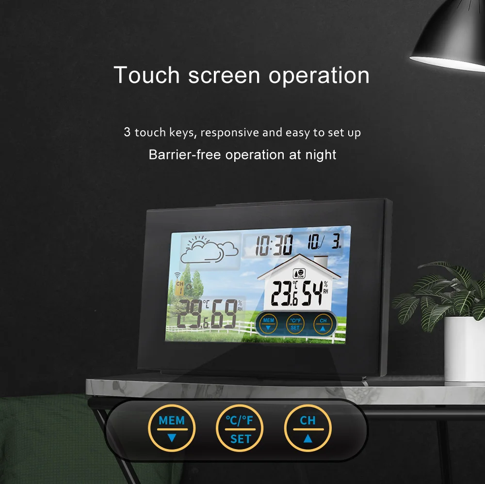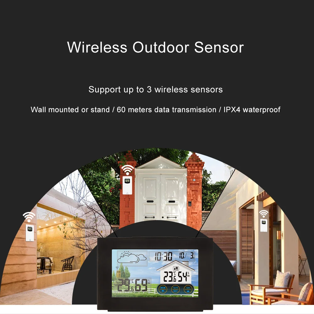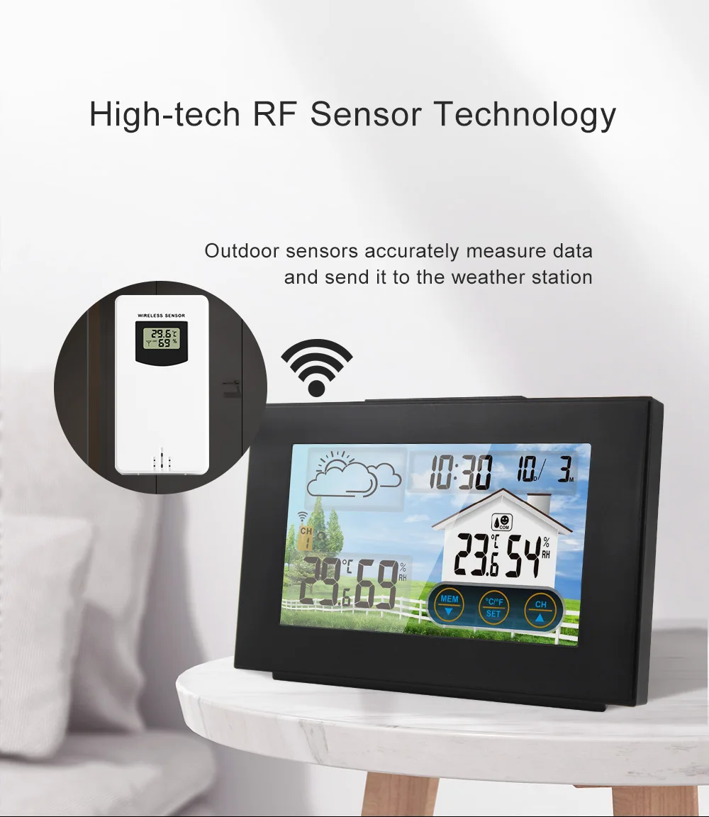 Домашний цифровой будильник FanJu, уличный термометр, гигрометр, погодные часы, беспроводной датчик времени, настольный сенсорный экран