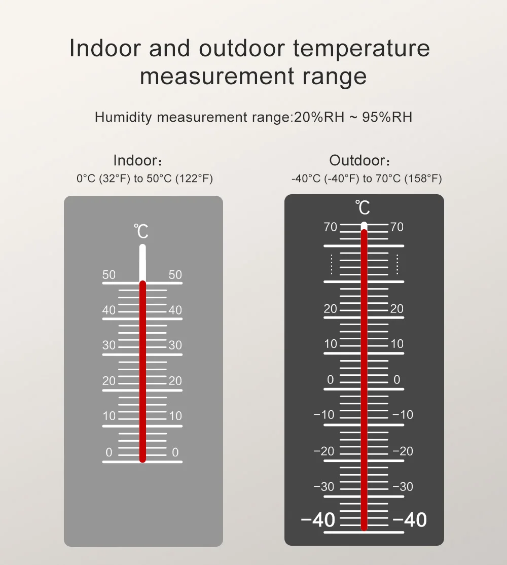Outdoor temperature-40°C (-40°F) ~ 70°C (158°F)