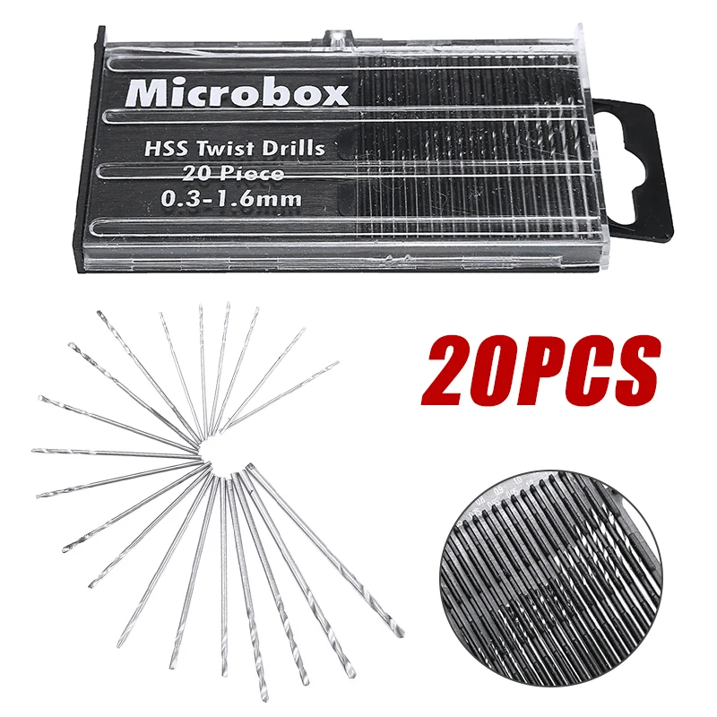 20 штук 0,3-1,6 мм мини микро HSS сверла набор точность ремесленных инструментов + коробка для изготовления модели электроники ремонтных работ