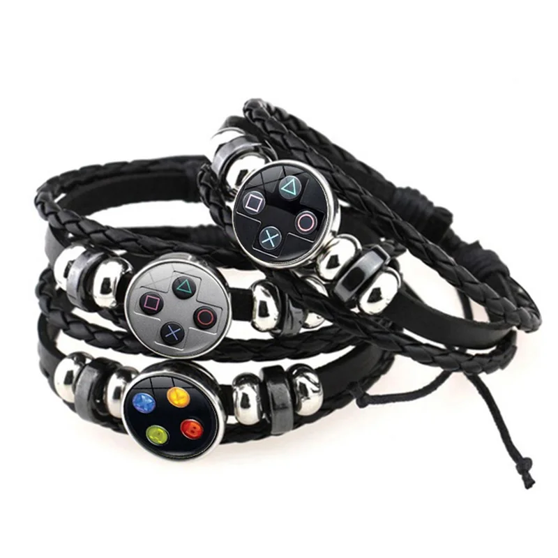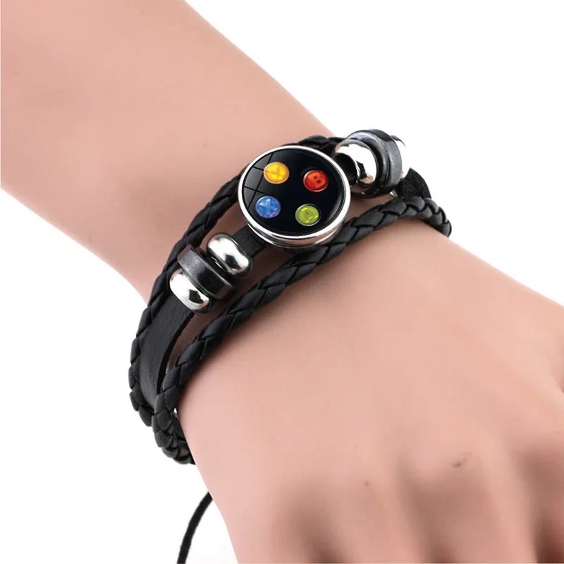 Мужской кожаный плетеный браслет, с кнопкой-защелкой