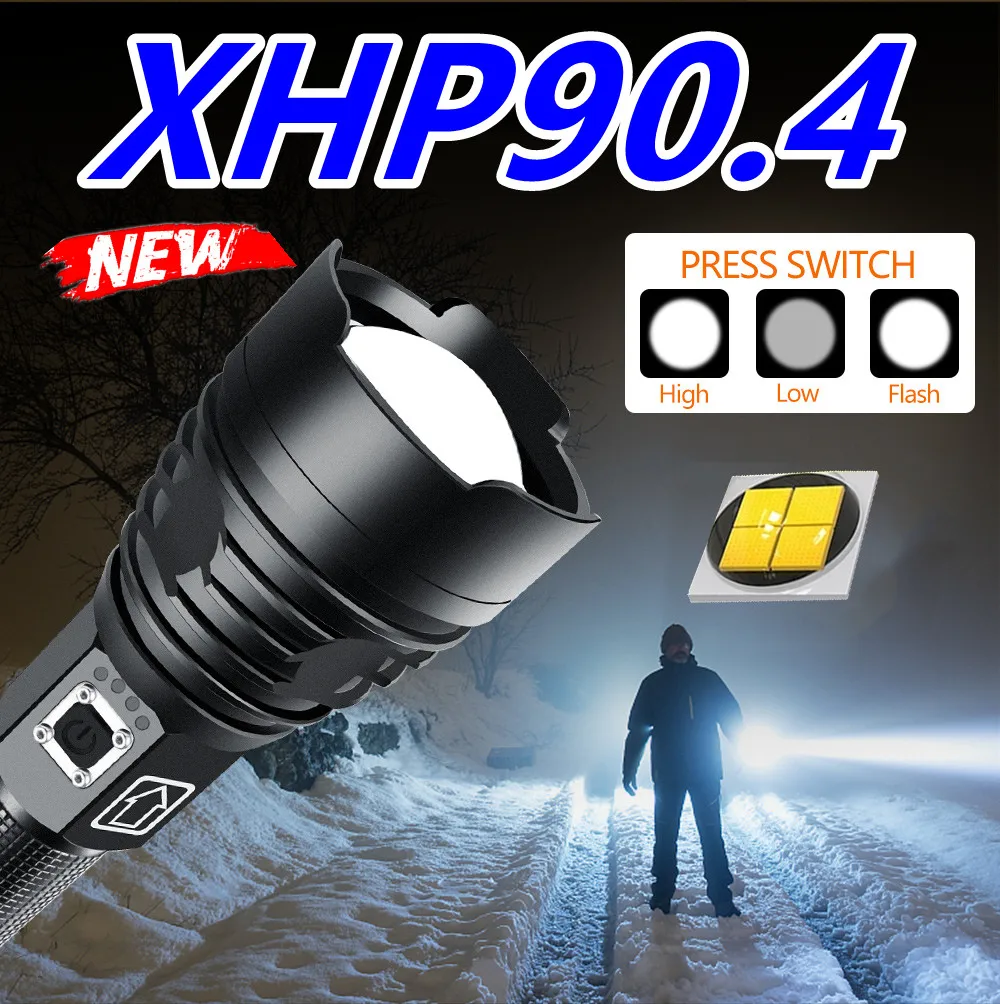 Высокий люмен самый мощный XHP90.4 большой дальности XHP70.2 вспышка светильник светодиодный тактический фонарь с переменным фокусным расстоянием фонарь светильник Применение 26650 батарея Перевозка груза падения