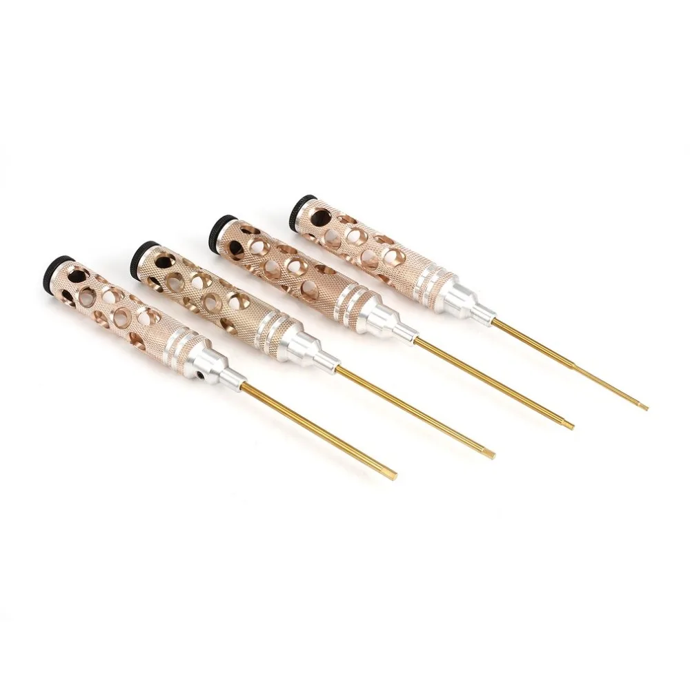 Описание:1 Этот посылка включает в себя 4 шт. 1,5 2,0 2,5 3,0 мм отвертки, подходит для большинства моделей rc, таких как вертолет, автомобиль, самолет, быстроходный беспилотный Радиоуправляемый летательный аппарат и так далее.2 светильник для переноски и простой в использовании, хороший выбор для ремонта или установки моделей rc.