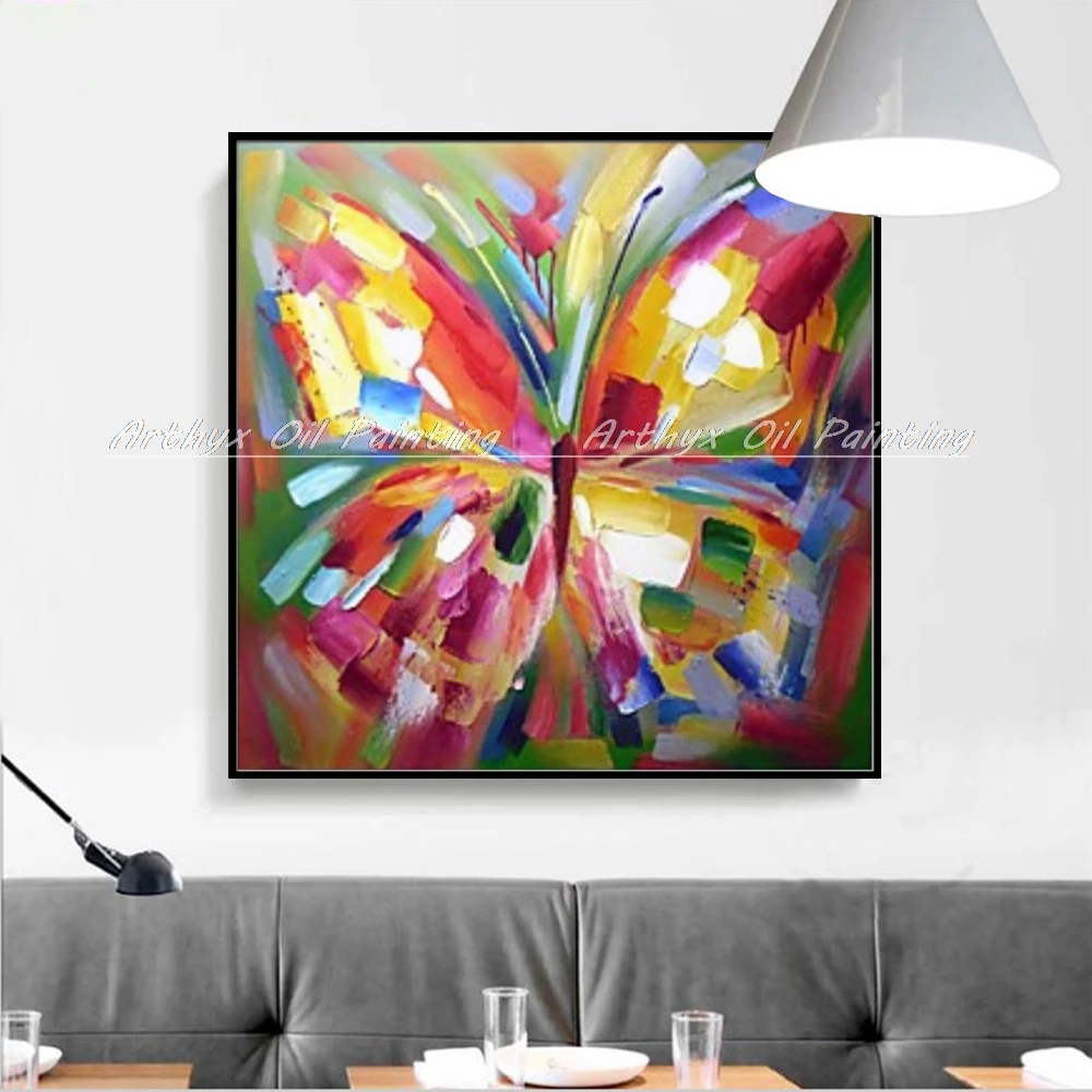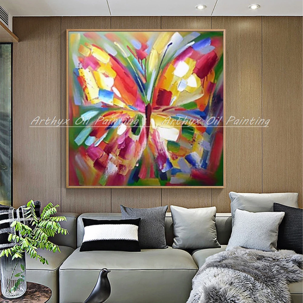 Arthyx Ручная роспись Абстрактная красочная бабочка масляная живопись на холсте современное Животное Искусство Настенная картина для гостиной домашний декор