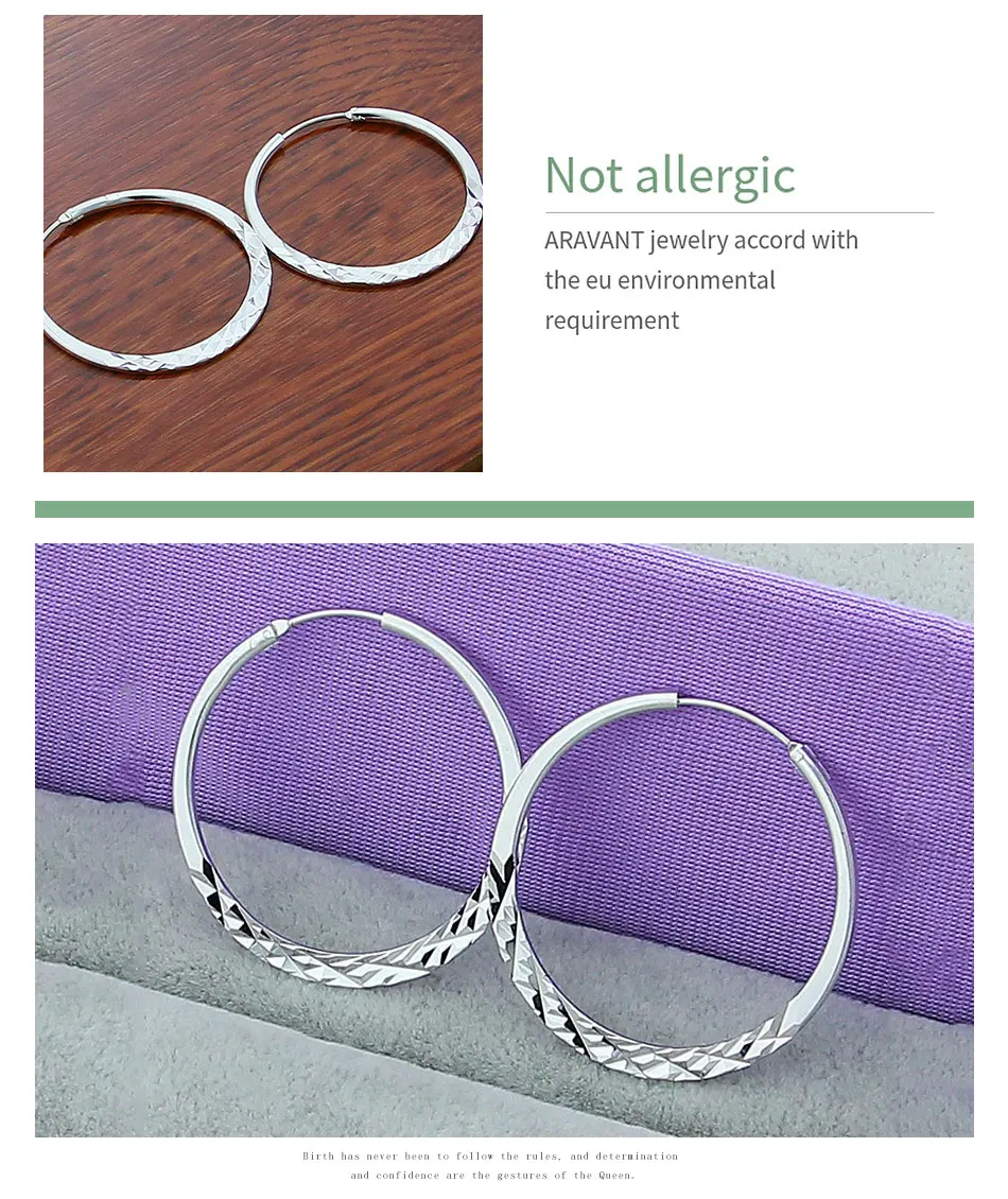 925 серебряные 40 мм 45 мм 50 мм круглые серьги-кольца для женщин свадебные очаровательные ювелирные изделия
