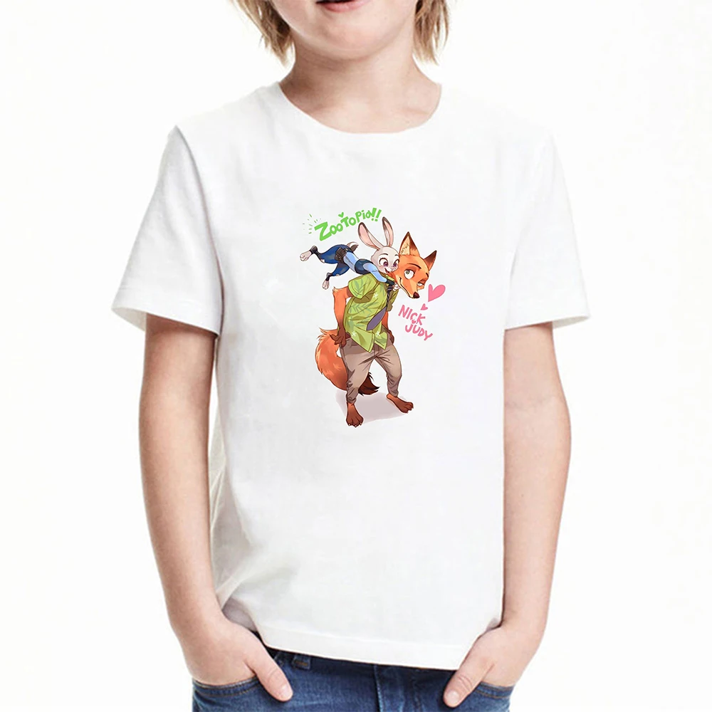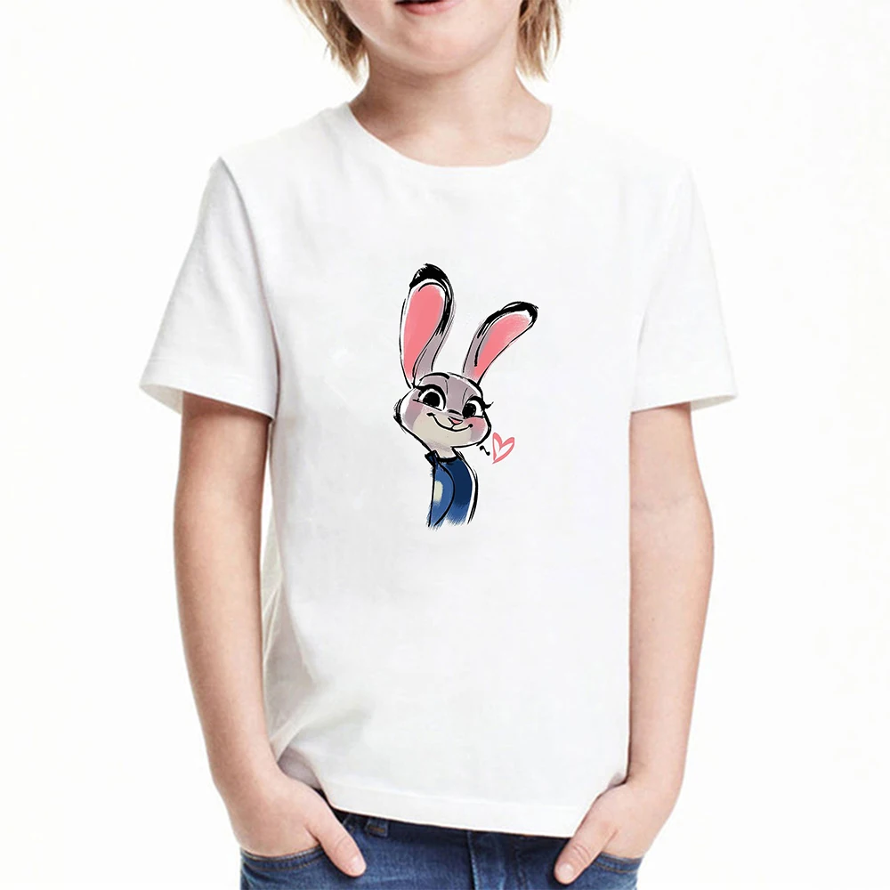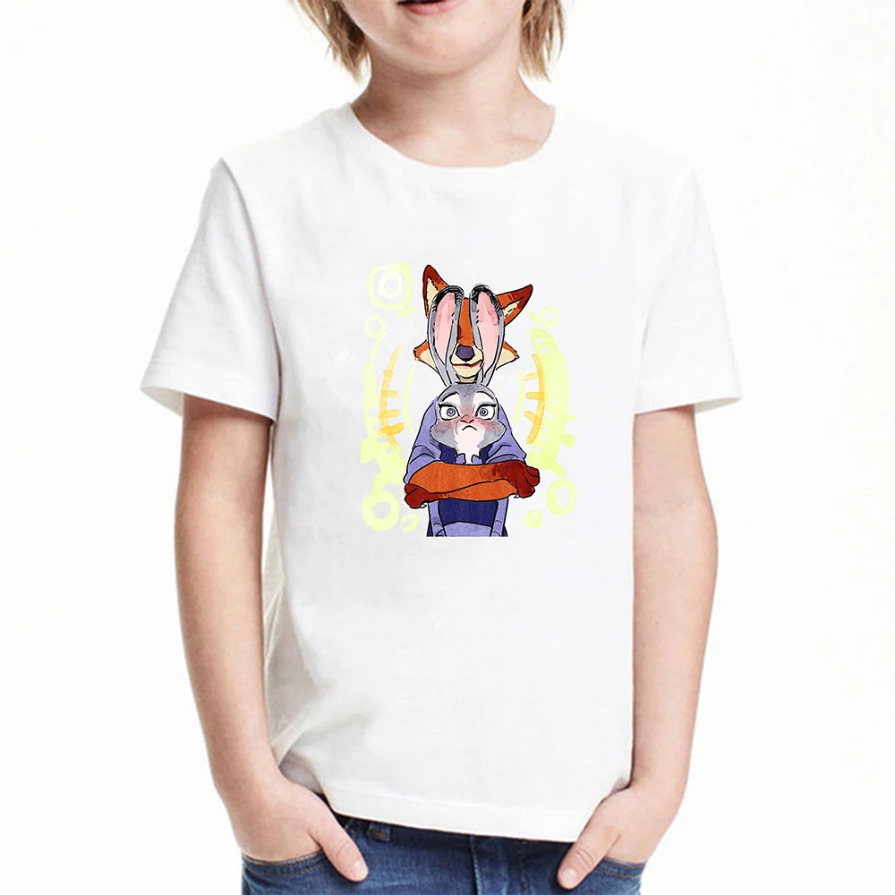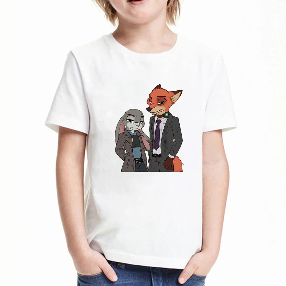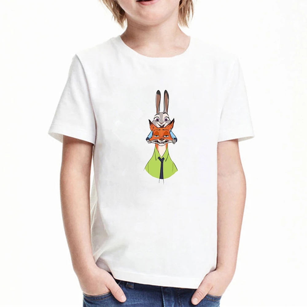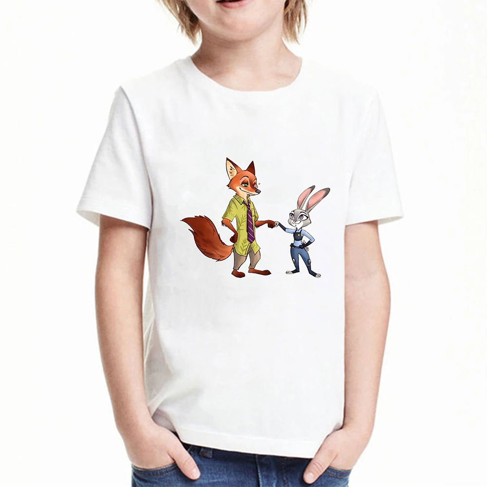 Модная футболка для девочек, Топ в стиле Харадзюку, футболка для мальчиков с изображением героев мультфильма зверополис, лисы, Ника, кролика, Джуди, детский летний костюм