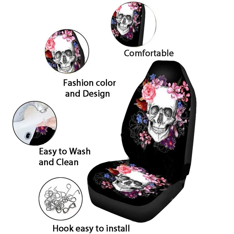 JUN TENG цветы череп индивидуальный дизайн водонепроницаемый чехол для сиденья автомобиля 1/2 удобный дышащий полиэфирный волокно протектор сиденья