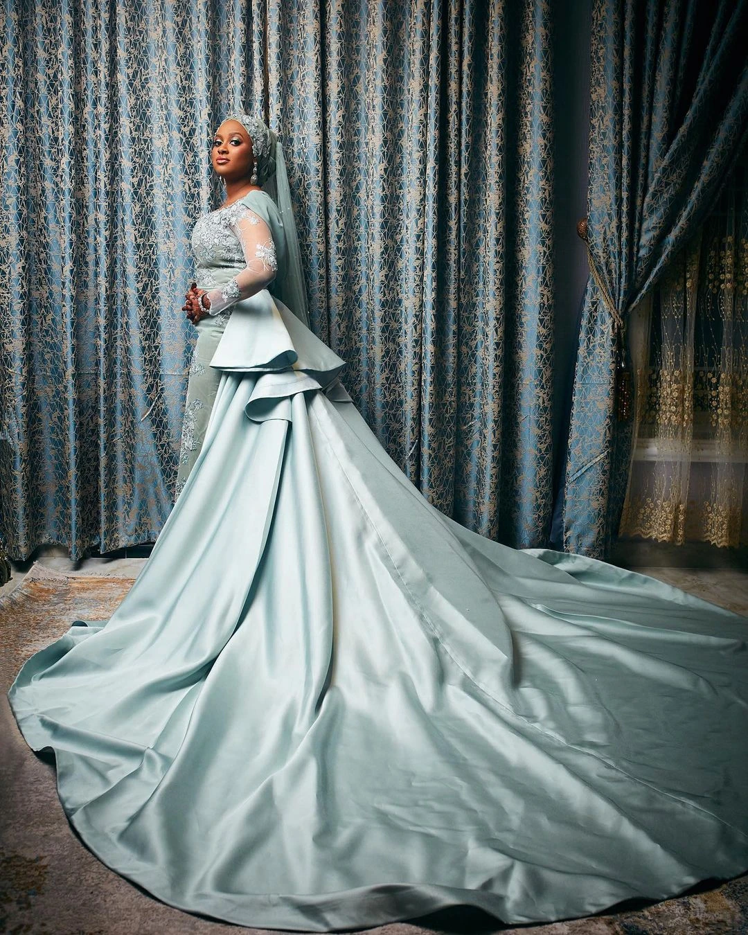 Синий Русалка размера плюс вечерние платья одежда с длинным рукавом...