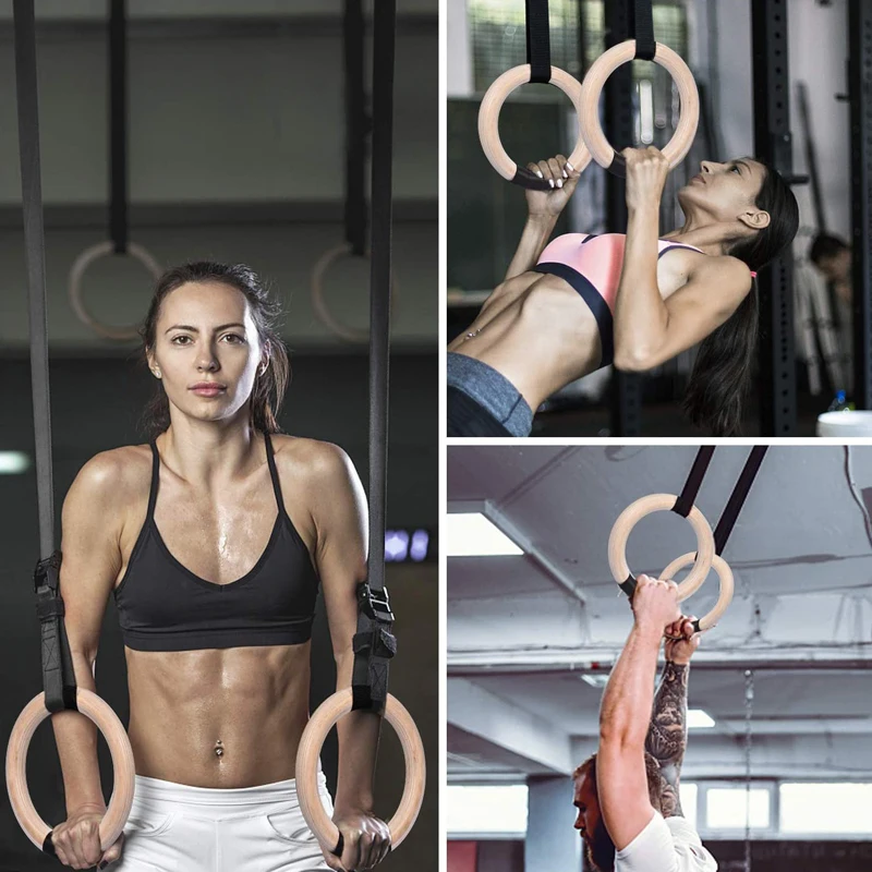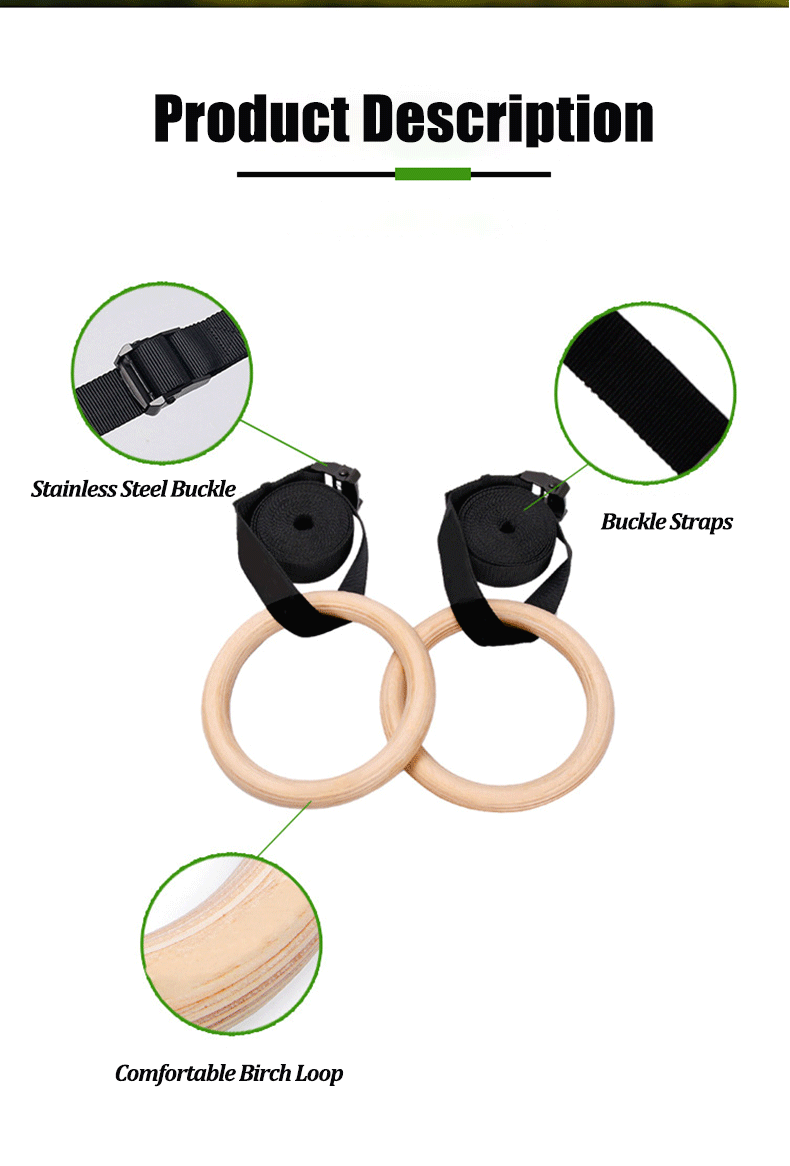 Гимнастические кольца для фитнеса, деревянные кольца 1,1 дюйма с регулируемой пряжкой, 2 шт.