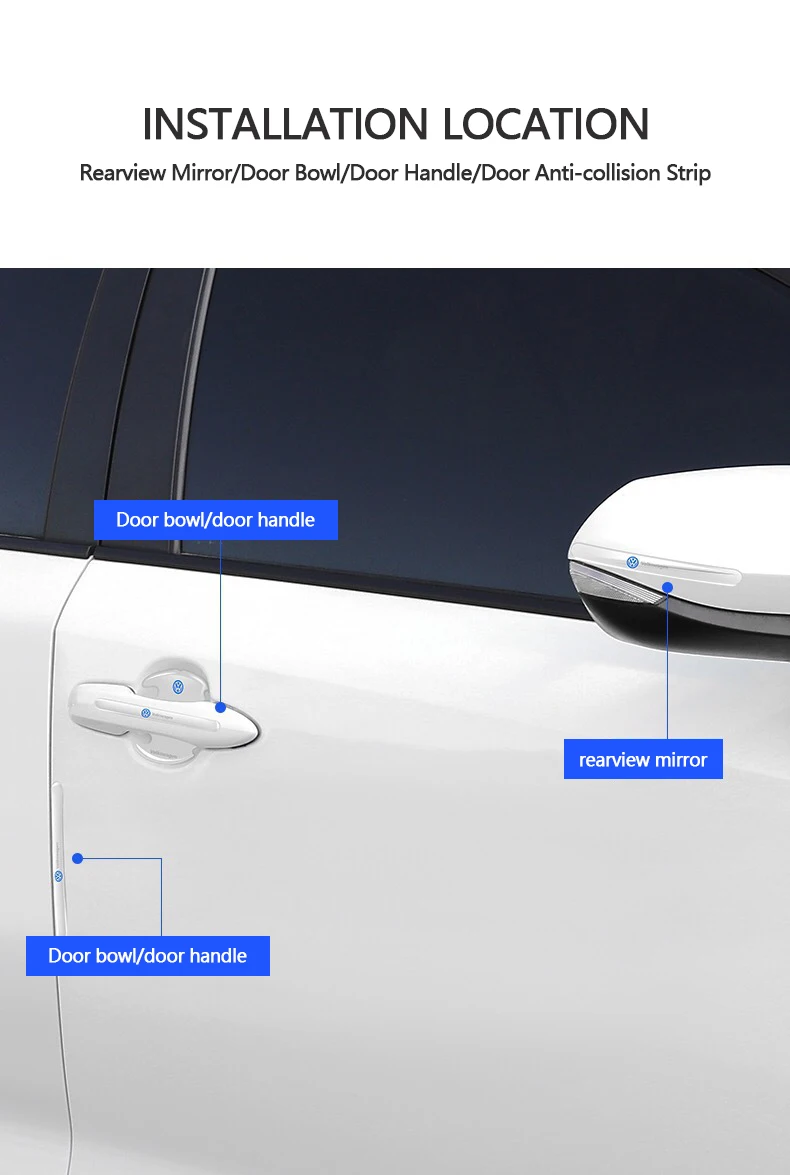 Применение: Защитите чашу дверной ручки от царапин. Также можно украсить автомобиль. Сделайте свою машину отличной от других.