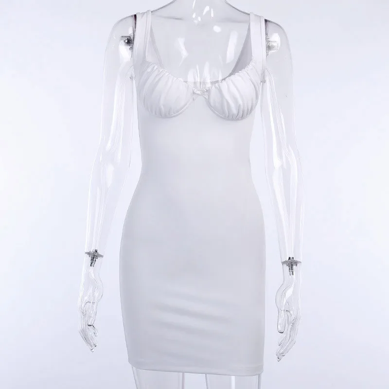 Летние пикантные узкие бюстгальтер без косточек с глубоким вырезом Тонкий платье 2021 летнее платье без рукавов с открытой спиной Мини платье Женский V образным вырезом Клубные платья Vestido