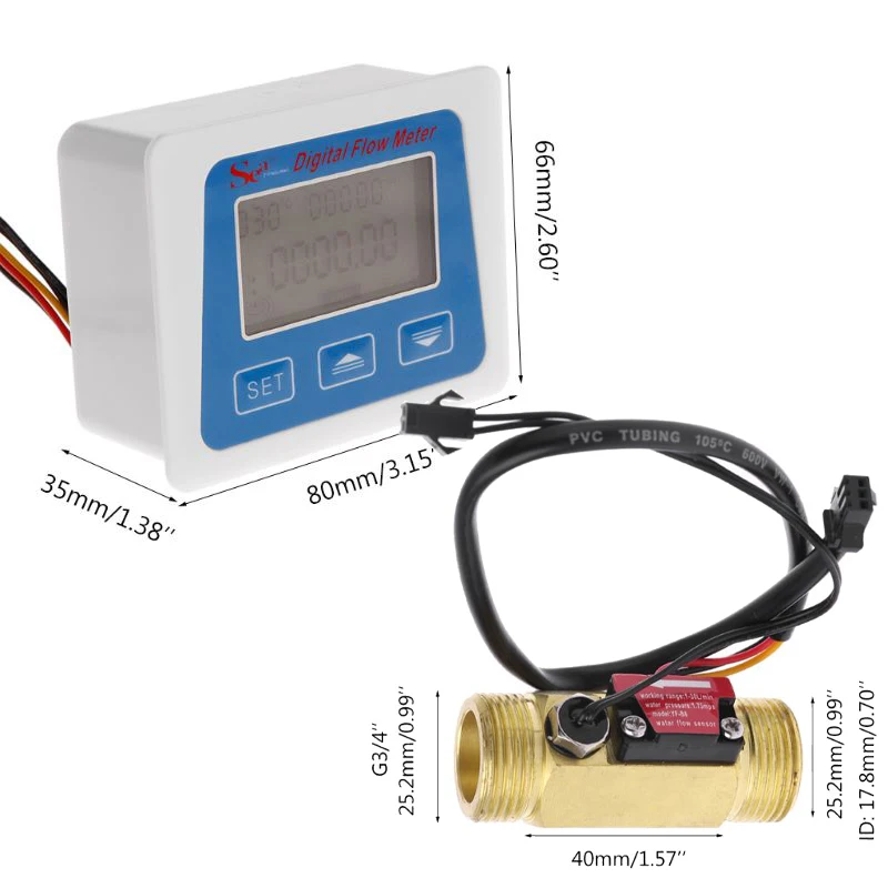 Цифровой расходомер с ЖК-дисплеем + латунный датчик расхода, измере...