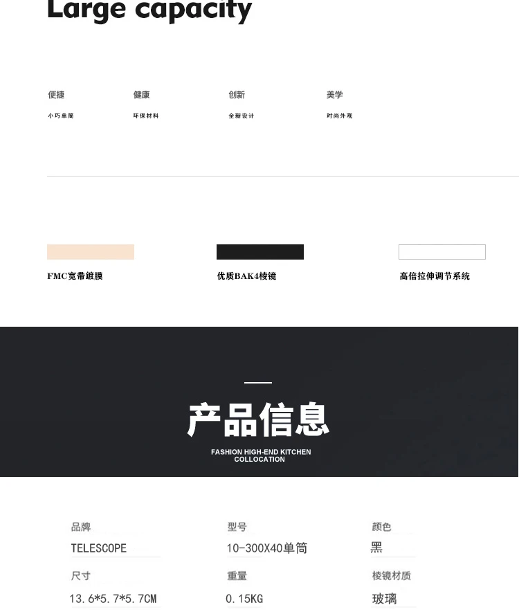 Особенности: Модель: 10-300x40 Увеличение: 10-30 раз Диаметр объектива: 25 мм Диаметр окуляра: 12 мм Призма Категория: bak4 Покрытие: многослойная широкополосная зеленая пленка Размеры: 12,7x3,2X3,2 см FOV: 10-30 раз Противоскользящая технология: Поддержка Водонепроницаемая технология: не поддерживается Технология складывания: Поддержка Функция зума: Поддержка Материал: алюминий Черный цвет Интерфейс штатива: Поддержка Назначение: Путешествия, Пешие прогулки, спорт, использование. Отрежьте около фокусного расстояния до 0,5 м, крупным планом Развитие является большим преимуществом. Компактность, легкость и способность Переносить в любое время.