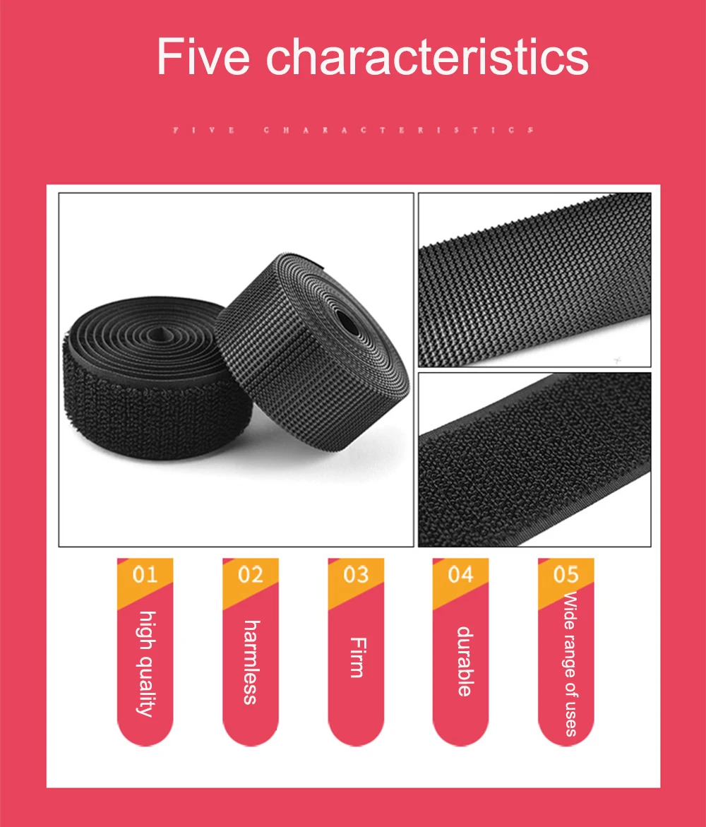 Застежка-липучка, черная, белая, 1 м, 20-100 мм