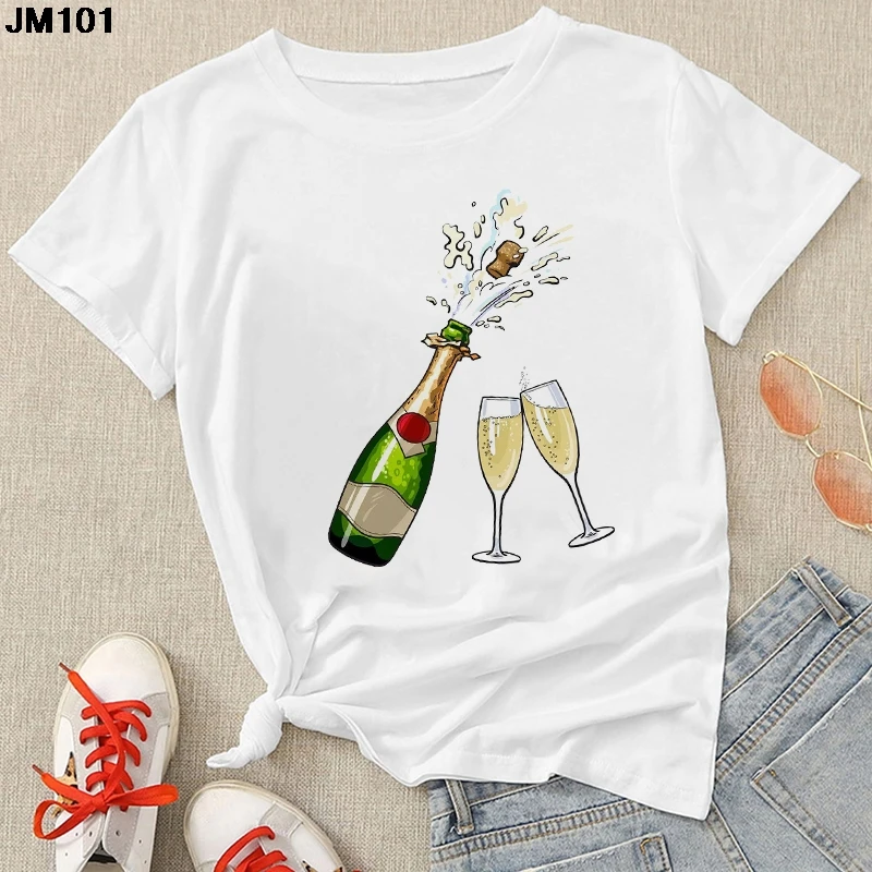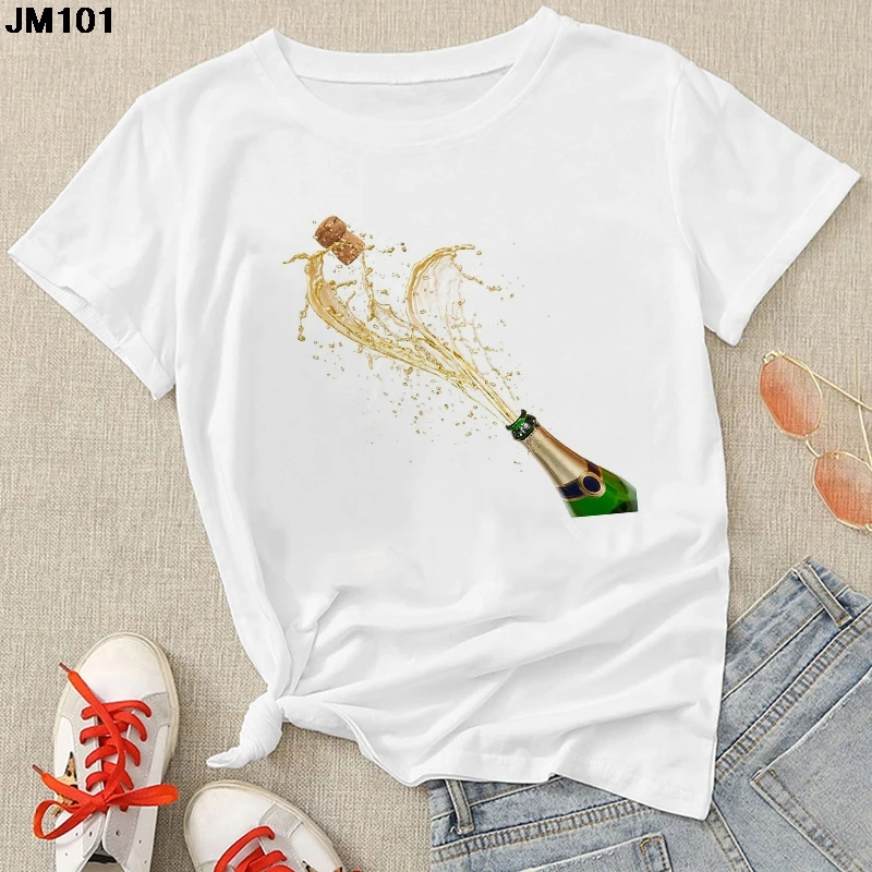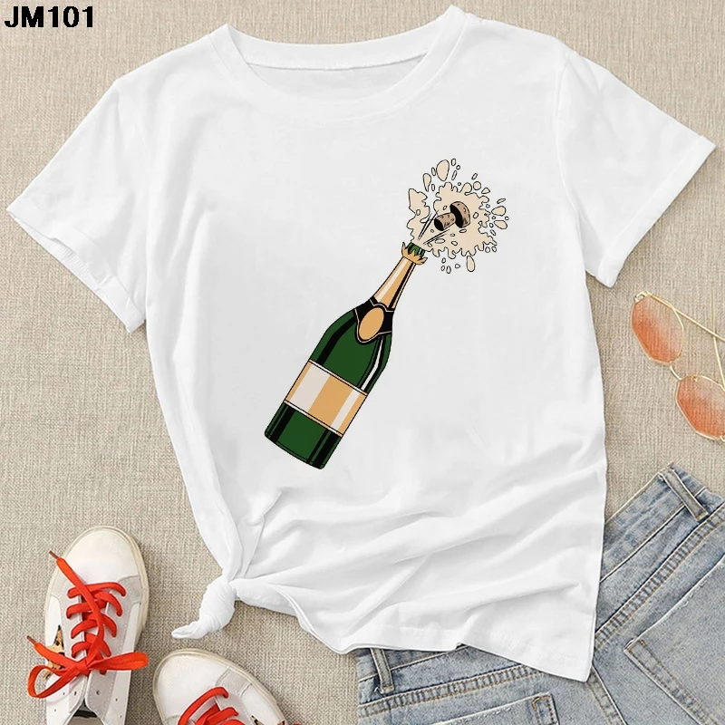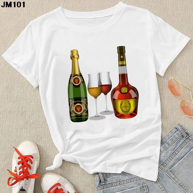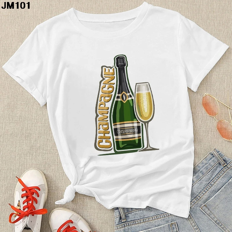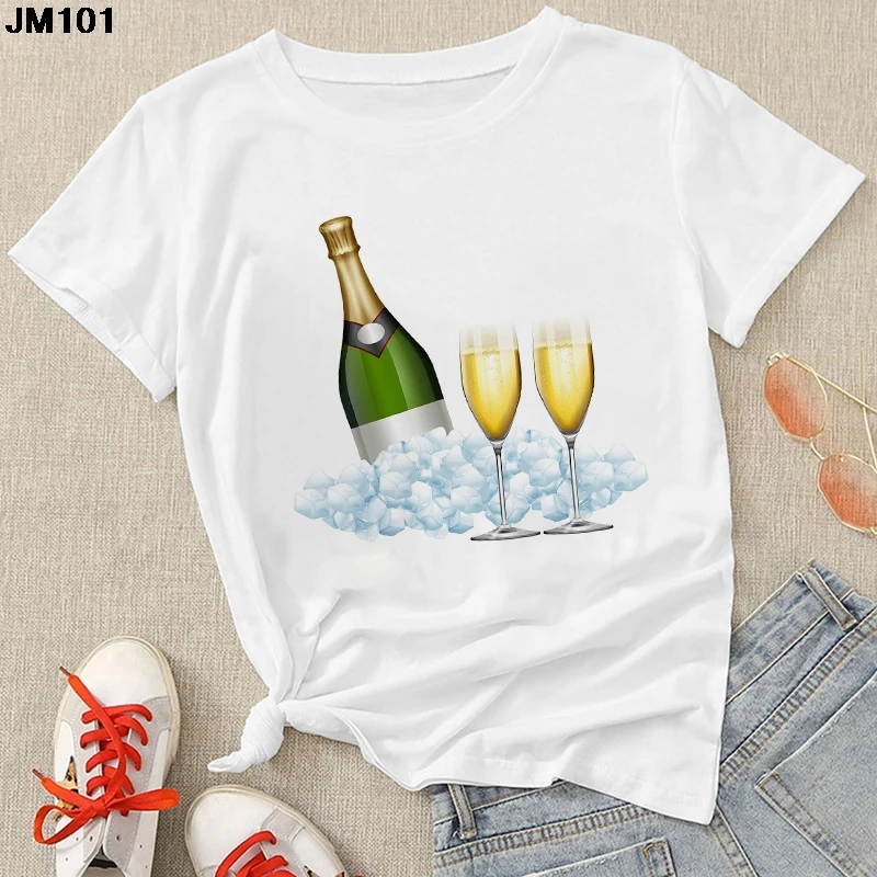 Женская футболка с принтом шампанского, Повседневная белая футболка в стиле Харадзюку, лето 2021