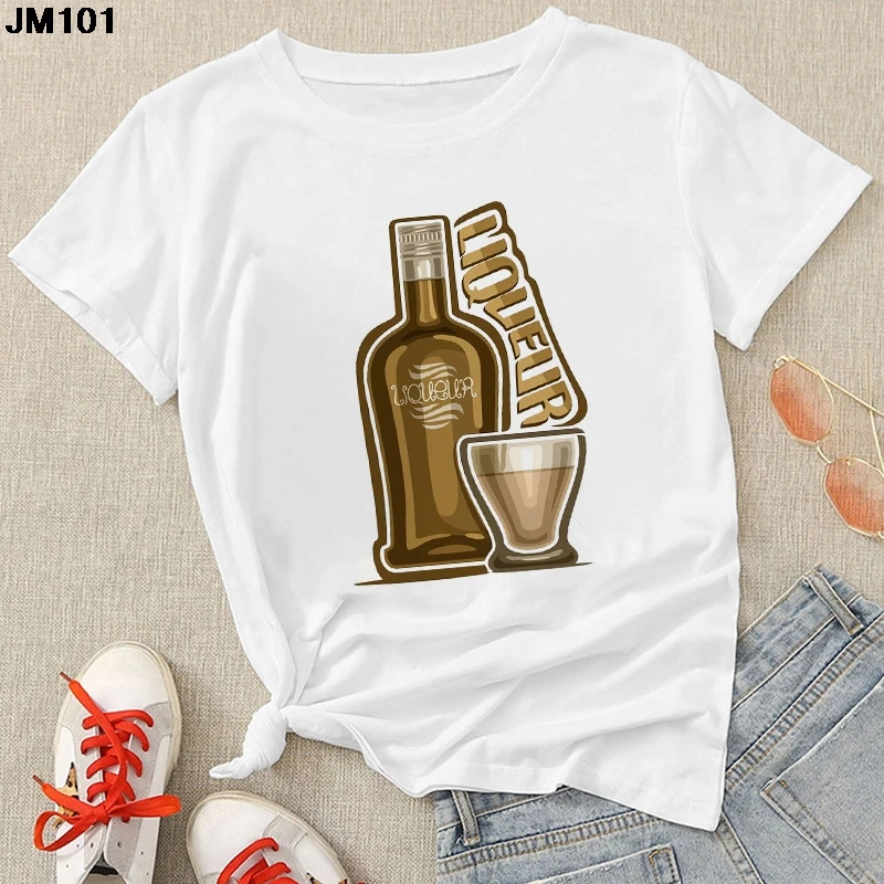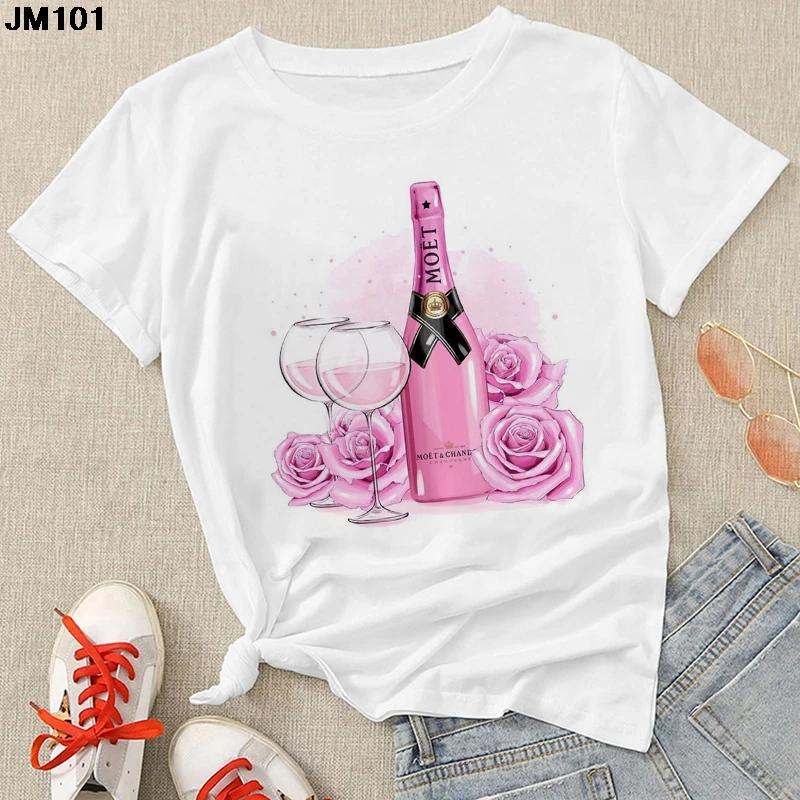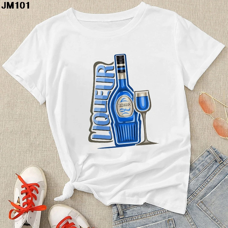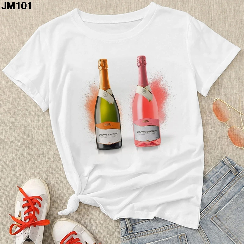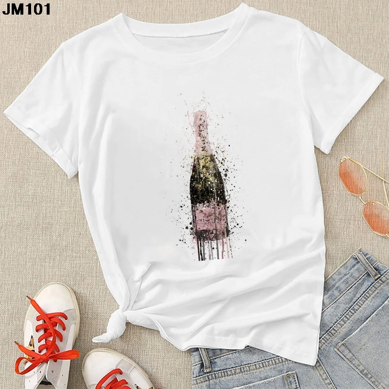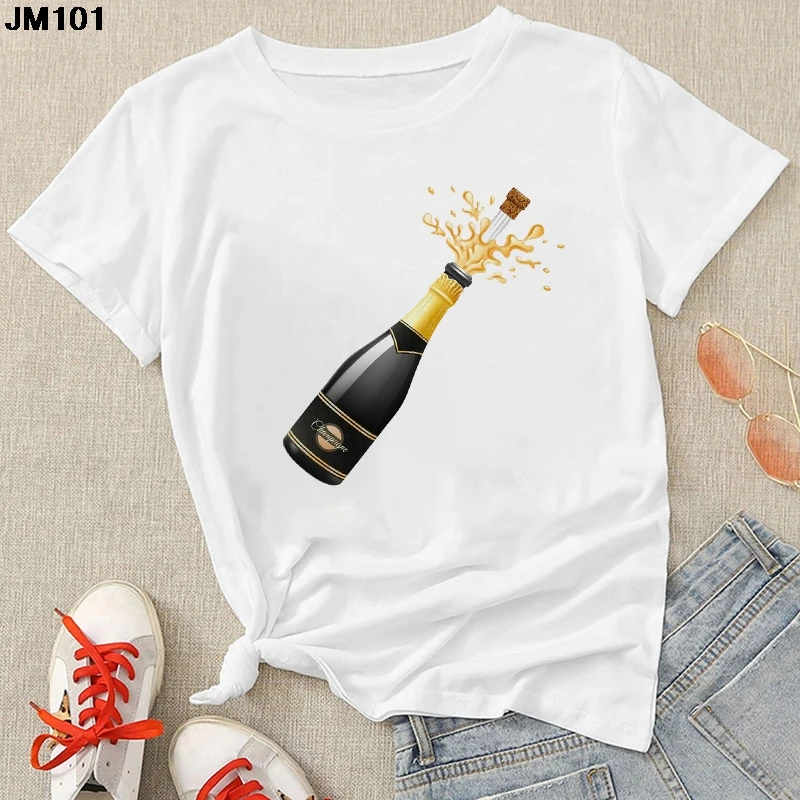 Женская футболка с принтом шампанского, Повседневная белая футболка в стиле Харадзюку, лето 2021