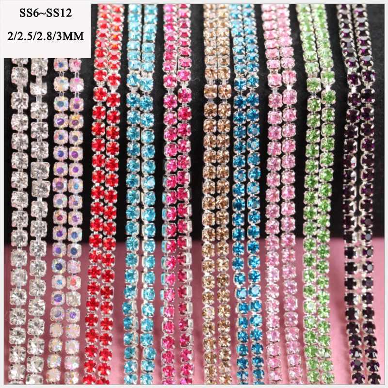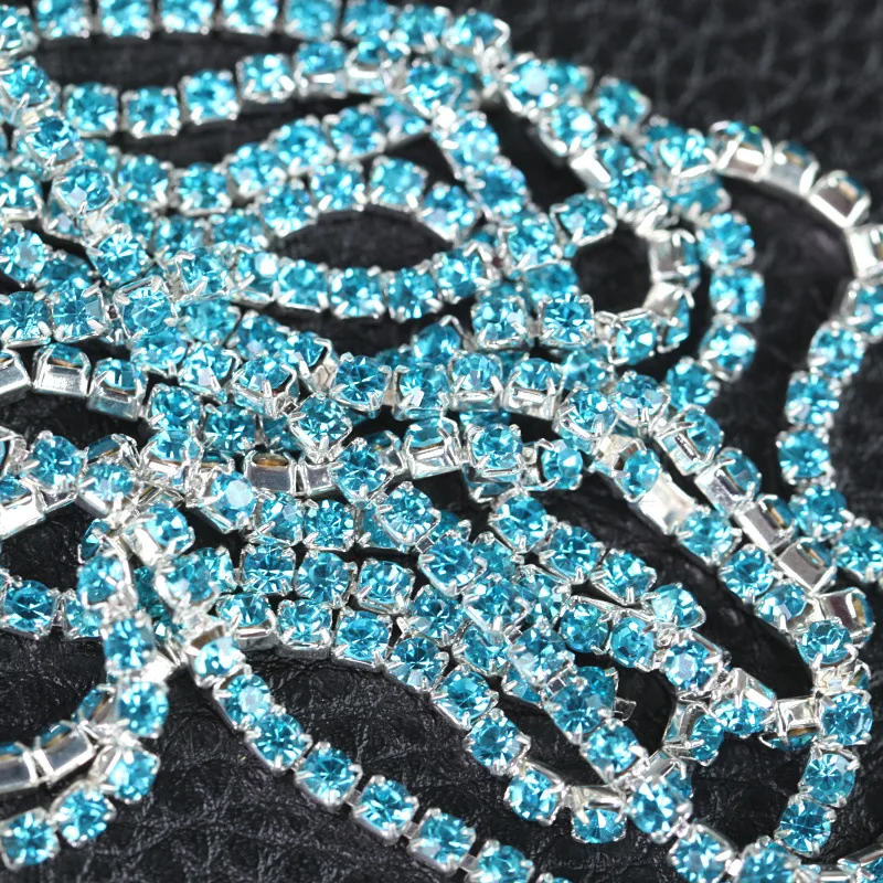 Цепочка для стразы, Серебряные стразы с плоским основанием, 1 мпартия