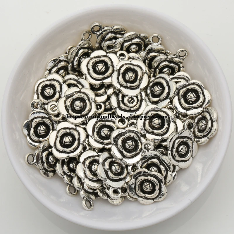 (50 шт.лот) тибетский серебряный европейский шарм из цинкового сплава в форме розы, размер Подвески 16x12 мм HA-2254