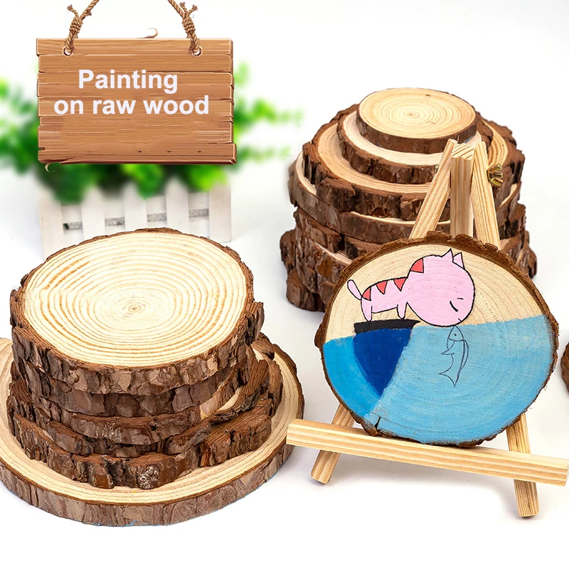 Необработанная деревянная сосна, круглые деревянные ломтики, круги с корой дерева, бревенчатые диски для вечерние НКИ, свадьбы, поделок, 1 упаковка