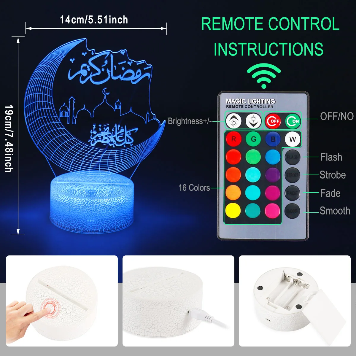 ИД Мубарак Рамадан Декор для дома луна звезды дистанционное управле...