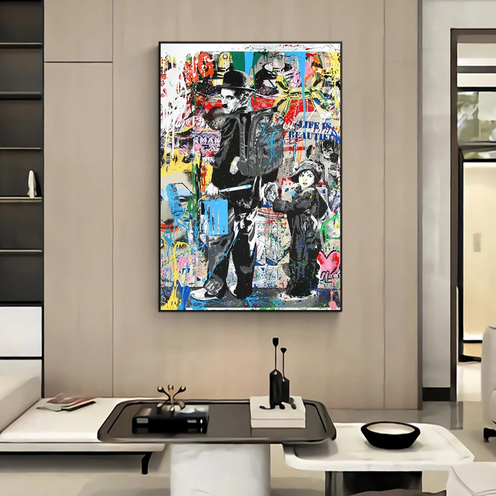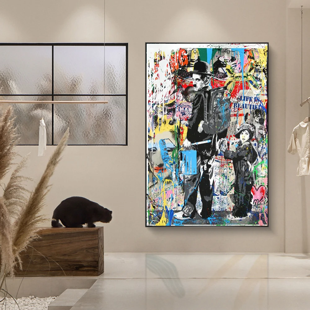 Картина на холсте, граффити, художественные принты, Чарли Чаплин, холст, плакат, печать для гостиной, спальни, украшение для дома